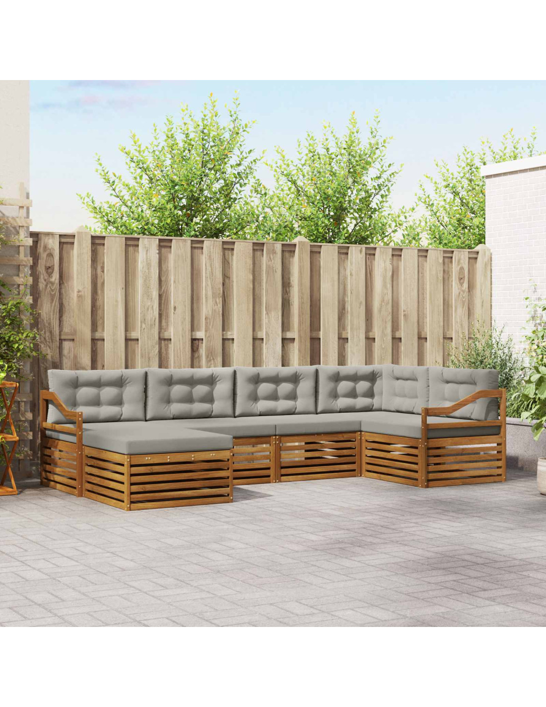 Il set di mobili da esterno unisce stile e funzionalità, diventando il punto focale per giardini e terrazze. Con un design moderno caratterizzato da linee pulite e pochi dettagli, aggiunge eleganza e invita al relax all'aperto. Realizzato in legno massello di acacia, garantisce durabilità e un aspetto che dura nel tempo, rendendolo una scelta ideale per chi cerca sia praticità che un tocco di classe nei mobili da esterno.