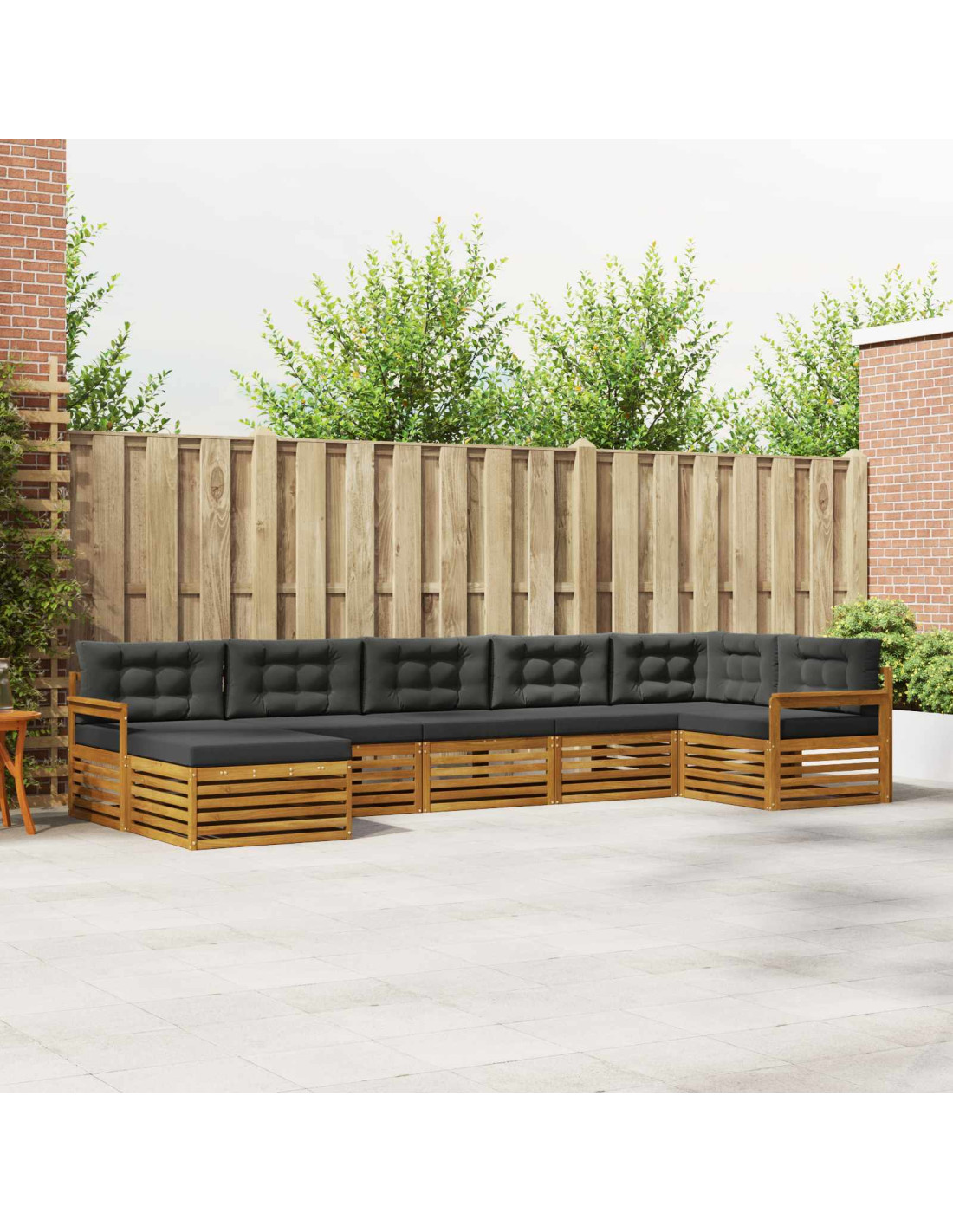 Il set di mobili da esterno unisce stile e funzionalità, rendendolo un vero colpo d'occhio per qualsiasi giardino o terrazza. Con il suo design moderno, caratterizzato da linee pulite e dettagli minimal, aggiunge eleganza e permette di goderti il relax all'aperto. Realizzato interamente in legno massello di acacia, è resistente e bello da vedere, perfetto per chi cerca funzionalità e design raffinato nei mobili da esterno.