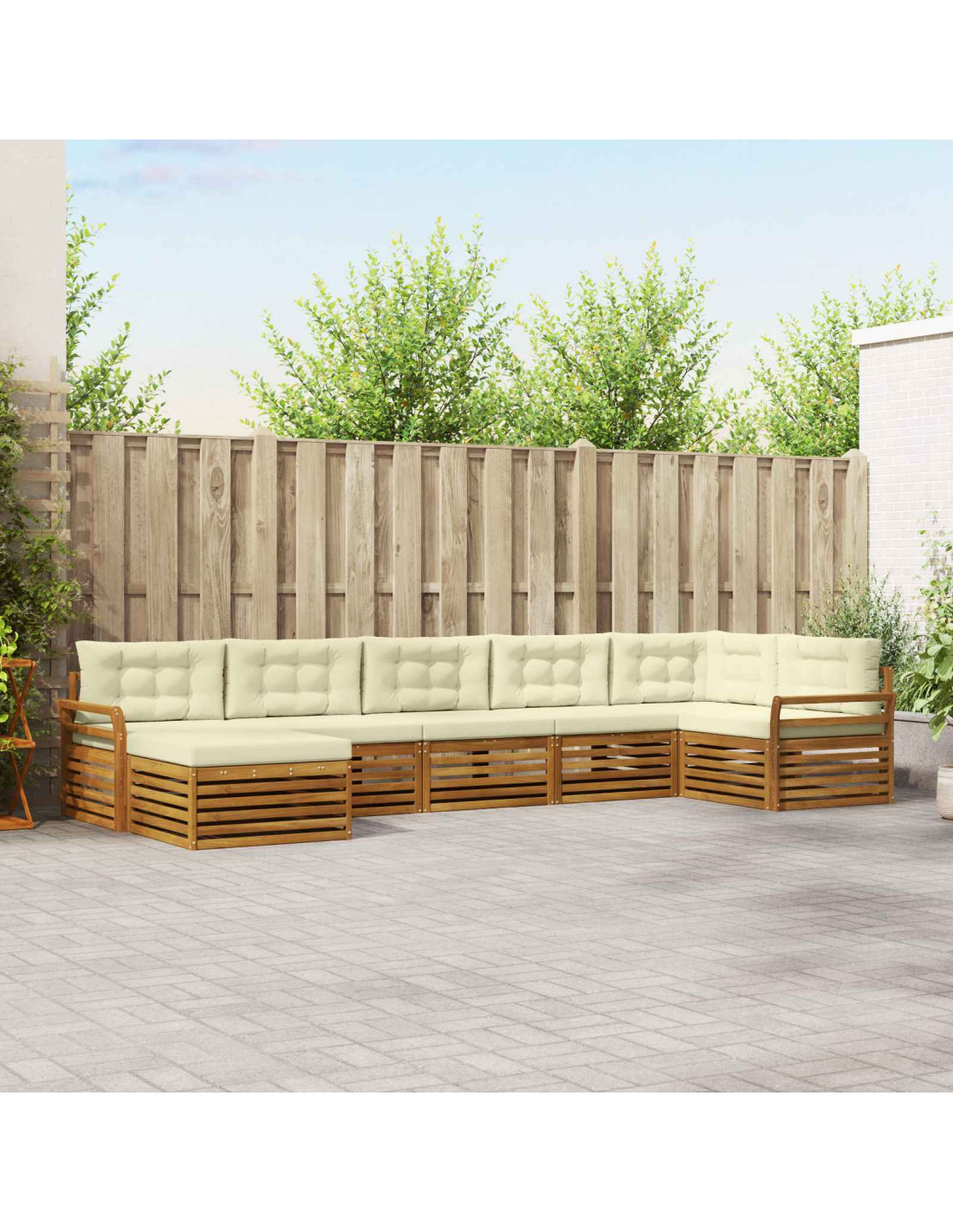 Il set di mobili da esterno unisce stile e funzionalità, rendendolo un vero colpo d'occhio per qualsiasi giardino o terrazza. Con il suo design moderno, caratterizzato da linee pulite e dettagli minimal, aggiunge eleganza e permette di goderti il relax all'aperto. Realizzato interamente in legno massello di acacia, è resistente e bello da vedere, perfetto per chi cerca funzionalità e design raffinato nei mobili da esterno.