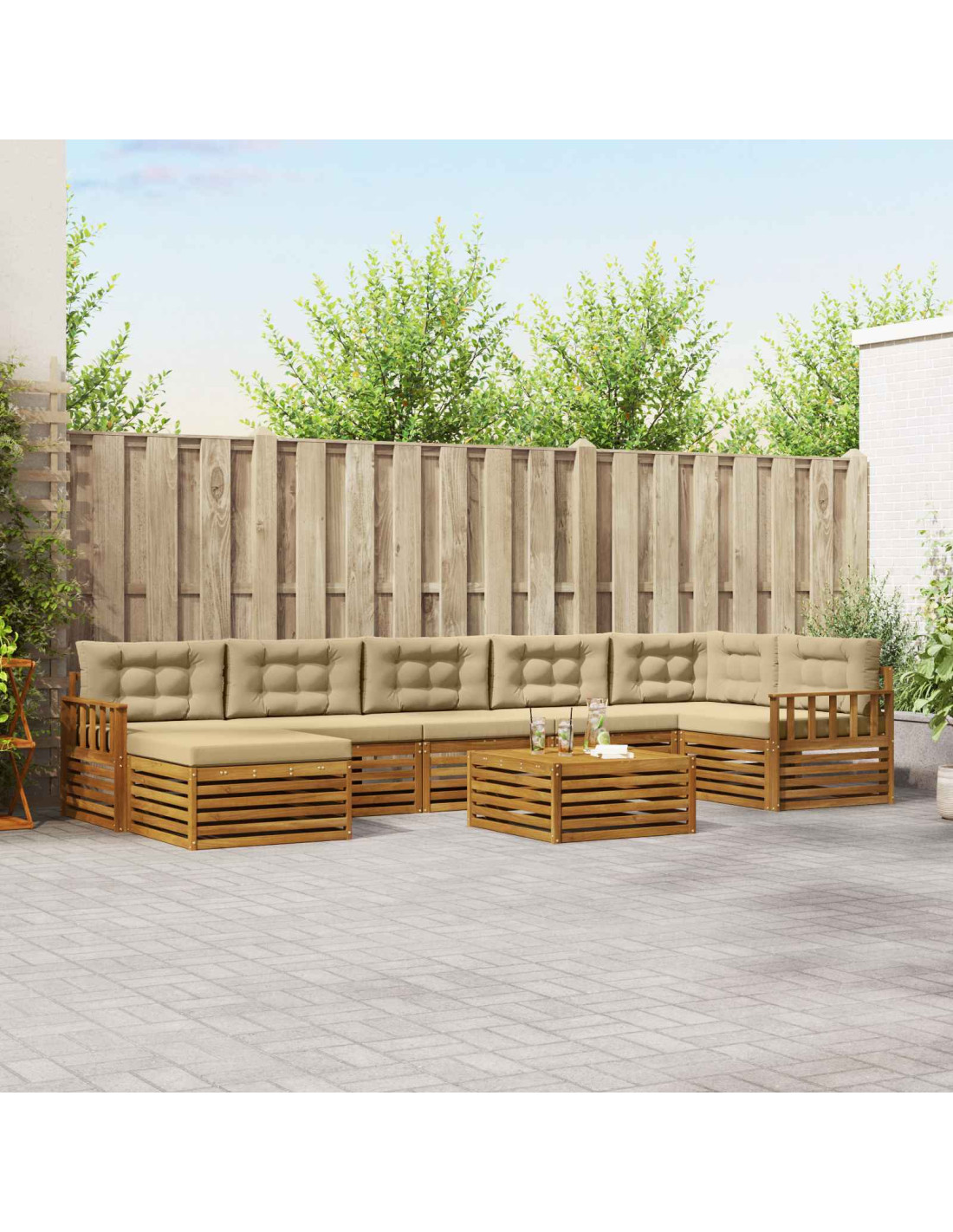 Questo Set di Divani Sezionali da Esterno è un mobili versatile e trendy pensato per trasformare il tuo giardino, patio o giardino posteriore in un rifugio elegante e accogliente. Con un'estetica moderna, questo set combina linee pulite e design funzionali, integrandosi facilmente in qualsiasi spazio esterno e diventando il punto ideale per rilassarsi o intrattenere gli amici. Grazie alla sua combinazione di legno naturale e struttura robusta, il set diventa un elemento decorativo e una soluzione pratica per sedersi.