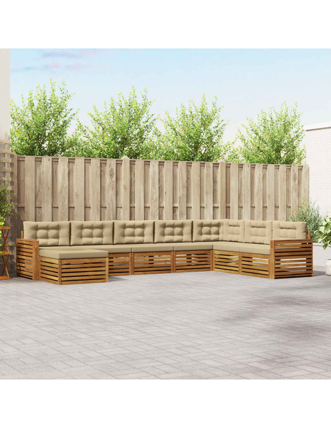 Il set di mobili da esterno combina stile e praticità, creando un colpo d'occhio per giardini e terrazze. Con linee pulite e design minimal, aggiunge eleganza, supportando il relax e le riunioni sociali. Realizzato in legno massello di acacia, garantisce durabilità e un aspetto durevole, perfetto per chi cerca eleganza e funzionalità nei mobili da esterno.