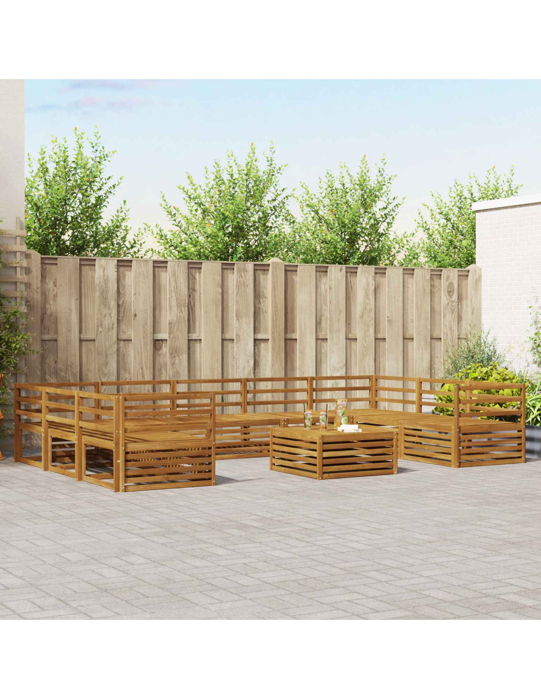 Il set di mobili da esterno unisce stile e funzionalità, diventando il punto focale di qualsiasi giardino o terrazza. Il design moderno, con linee pulite e dettagli minimali, aggiunge eleganza e incoraggia il relax e le feste all'aperto. Realizzato in legno massello di acacia, il set è resistente e ha un aspetto duraturo, perfetto per chi cerca praticità e design nei mobili esterni.