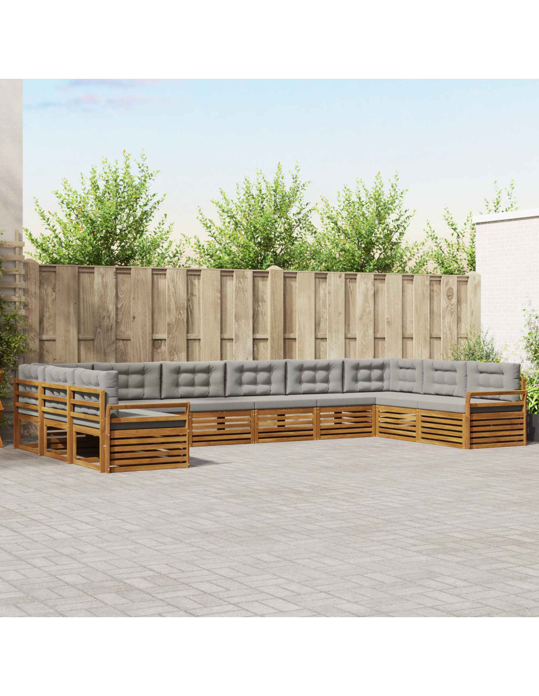 Il set di mobili da esterno unisce stile e funzionalità, diventando il punto focale di ogni giardino o terrazzo. Con il suo design moderno, caratterizzato da linee pulite e dettagli essenziali, aggiunge eleganza e sostiene il relax e le feste all'aperto. Fatto interamente in legno massello di acacia, questo set è duraturo e ha un'attrattiva che dura nel tempo, rendendolo ideale per chi cerca praticità senza rinunciare al design.