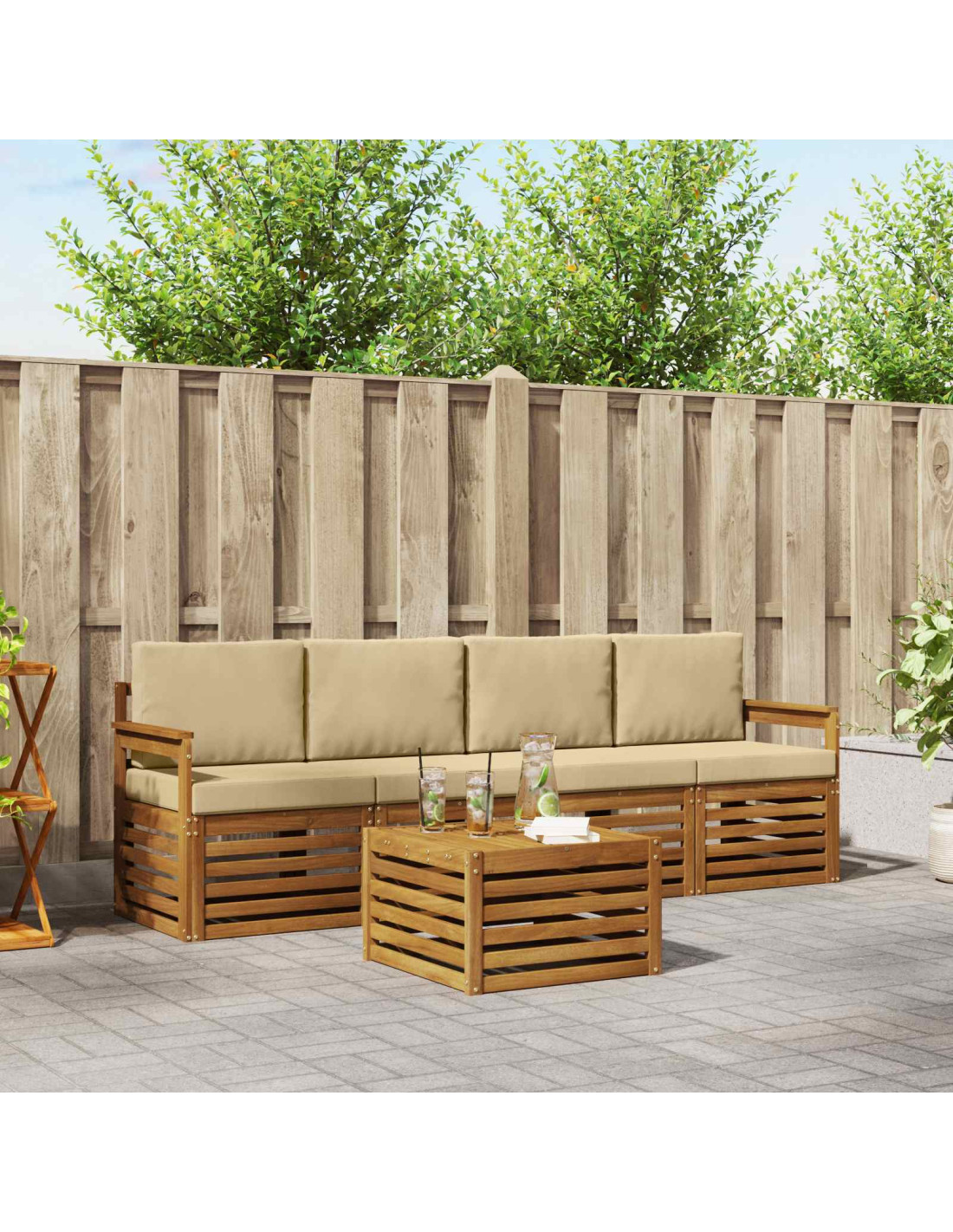 Questo set di mobili da esterno combina alla grande stile e funzionalità, diventando il punto focale del tuo giardino o terrazza. Con un design moderno, caratterizzato da linee pulite e dettagli essenziali, aggiunge eleganza e invita al relax all'aperto e alle chiacchiere con gli amici. Realizzato in legno massello di acacia, è robusto e bello, perfetto per chi cerca praticità e un tocco di stile nei mobili da esterno.
