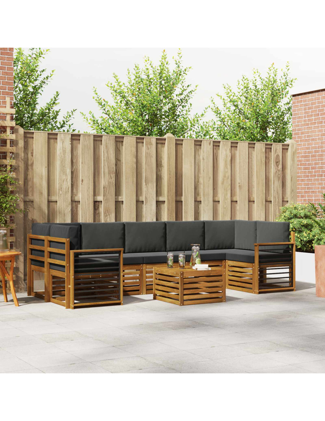 Il set per esterni unisce stile e praticità, diventando il punto focale del tuo giardino o terrazzo. Con un design moderno, linee pulite e dettagli minimali, aggiunge un tocco di eleganza, perfetto per il relax e le riunioni all'aperto. Realizzato in legno massello di acacia, garantisce durata e un aspetto che resiste nel tempo, rendendolo perfetto per chi cerca praticità e design raffinato.