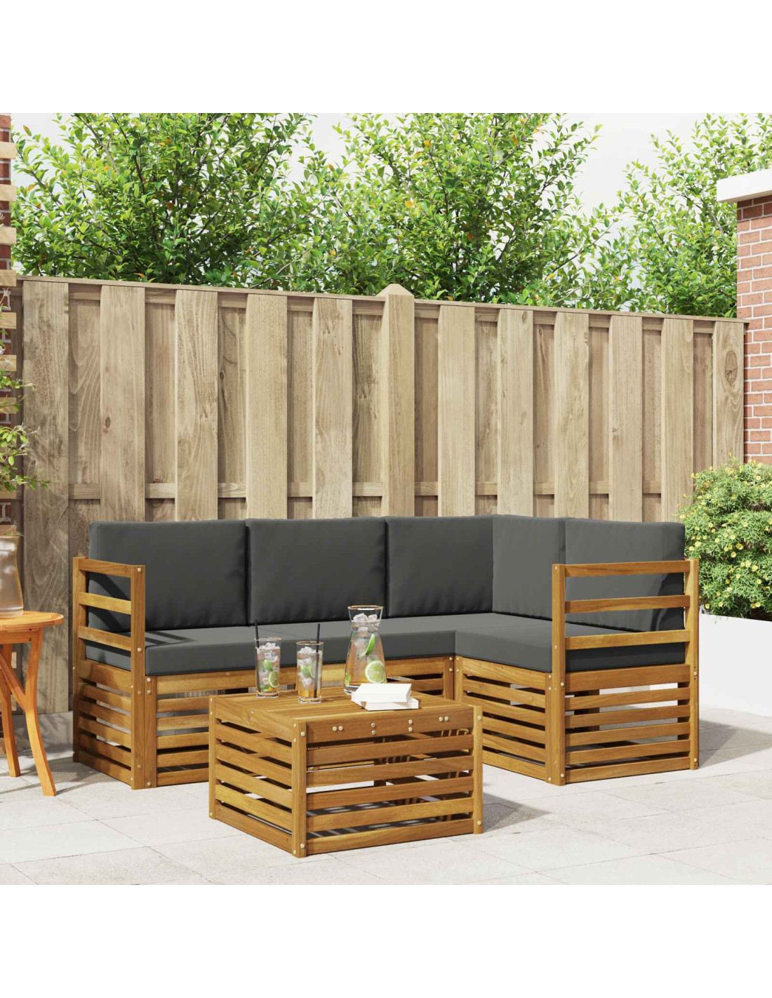 Questo set di divani modulari da esterno combina il design moderno e la funzionalità pratica, arricchendo ogni giardino, patio o spazio all'aperto. Realizzato in legno massello di acacia con una calda tonalità marrone, il set crea un'atmosfera accogliente. La sua modularità stimola la creatività, permettendo di riconfigurare i posti a sedere per occasioni diverse, da incontri intimi a eventi sociali vivaci.