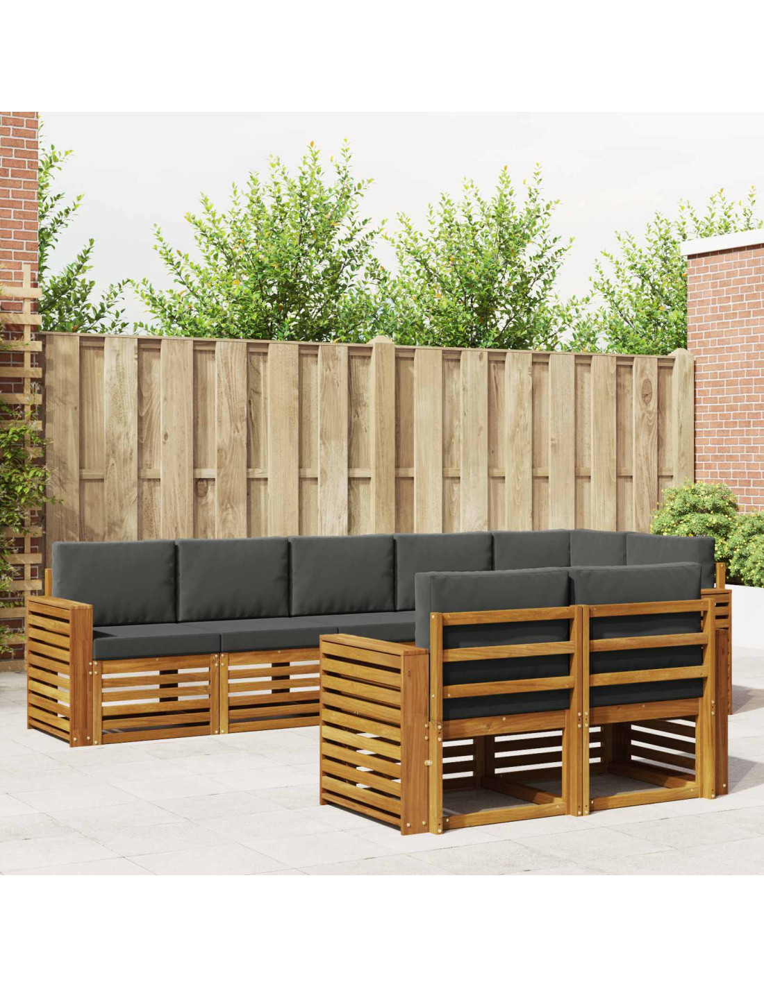 Questo set di mobili da esterno è un mix perfetto di stile e funzionalità: un vero colpo d'occhio per ogni giardino o terrazza. Il design moderno, con linee pulite e dettagli minimalisti, aggiunge un tocco di eleganza, ideale per godersi il relax all'aperto e gli incontri con amici. Realizzato in legno massello di acacia, questo set offre resistenza e una bellezza che dura nel tempo, adatta a chi vuole un arredamento pratico e ben fatto per l'esterno.