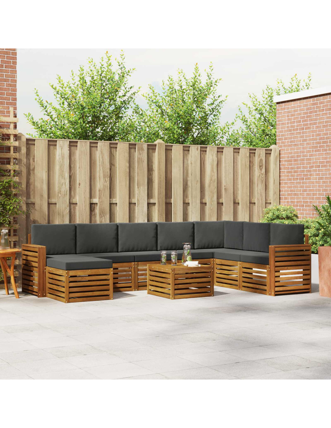 Questo set di mobili da esterno abbina stile e funzionalità, creando un centro d'attrazione per qualsiasi giardino o terrazza. Il design moderno, con linee pulite e semplici dettagli, aggiunge eleganza per momenti di relax e socializzazione all'aperto. Realizzato in legno massello di acacia, è super resistente e bello da vedere, così è perfetto per chi cerca praticità e bellezza nei mobili all'aperto.
