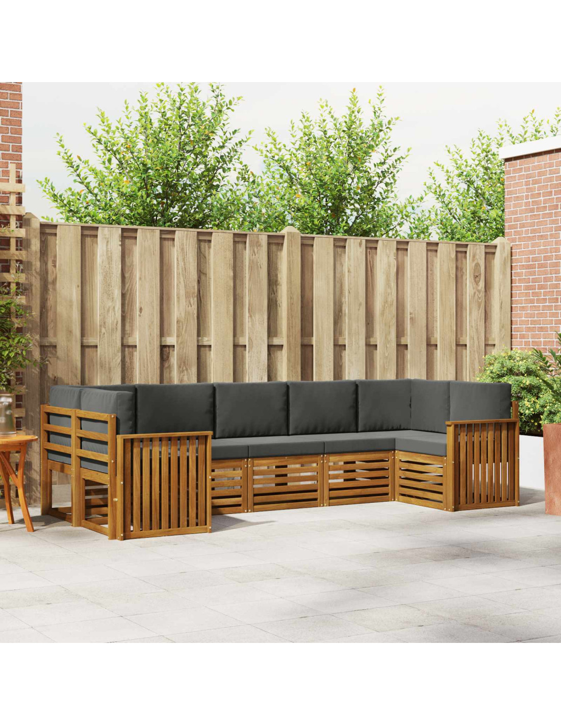 Questo set di divani sezionali per esterni è sia elegante che pratico, perfetto per giardini, patii o aree piscine. Realizzato in legno massello di acacia, porta un fascino naturale che si sposa alla perfezione con gli spazi aperti. La configurazione modulare offre flessibilità, così da divertirti in ogni occasione, che tu voglia rilassarti o organizzare un vivace ritrovo.