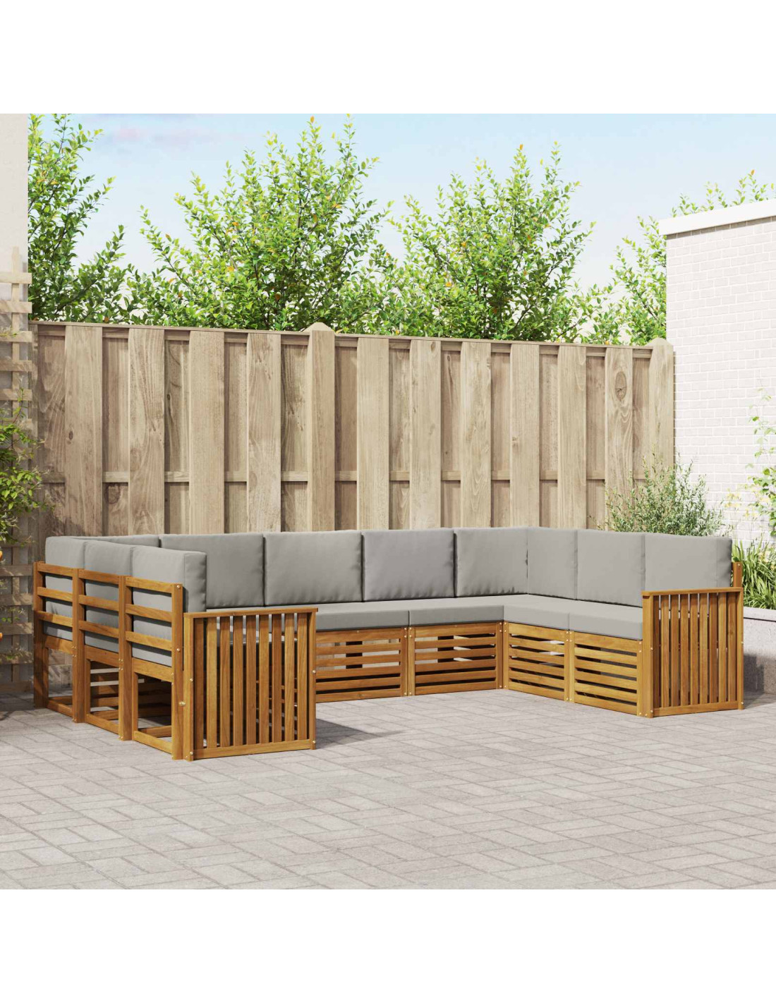 Questo set di mobili da esterno unisce stile e funzionalità, diventando il fulcro di qualsiasi giardino o terrazza. Il design moderno, con le sue linee pulite e dettagli semplici, aggiunge un tocco di eleganza, perfetto per il relax all'aperto e per passare del tempo in buona compagnia. Interamente fatto di legno massello di Acacia, è super resistente e mantiene a lungo un bell'aspetto, rendendolo una scelta perfetta per chi cerca praticità e un bel design nei mobili per esterni.