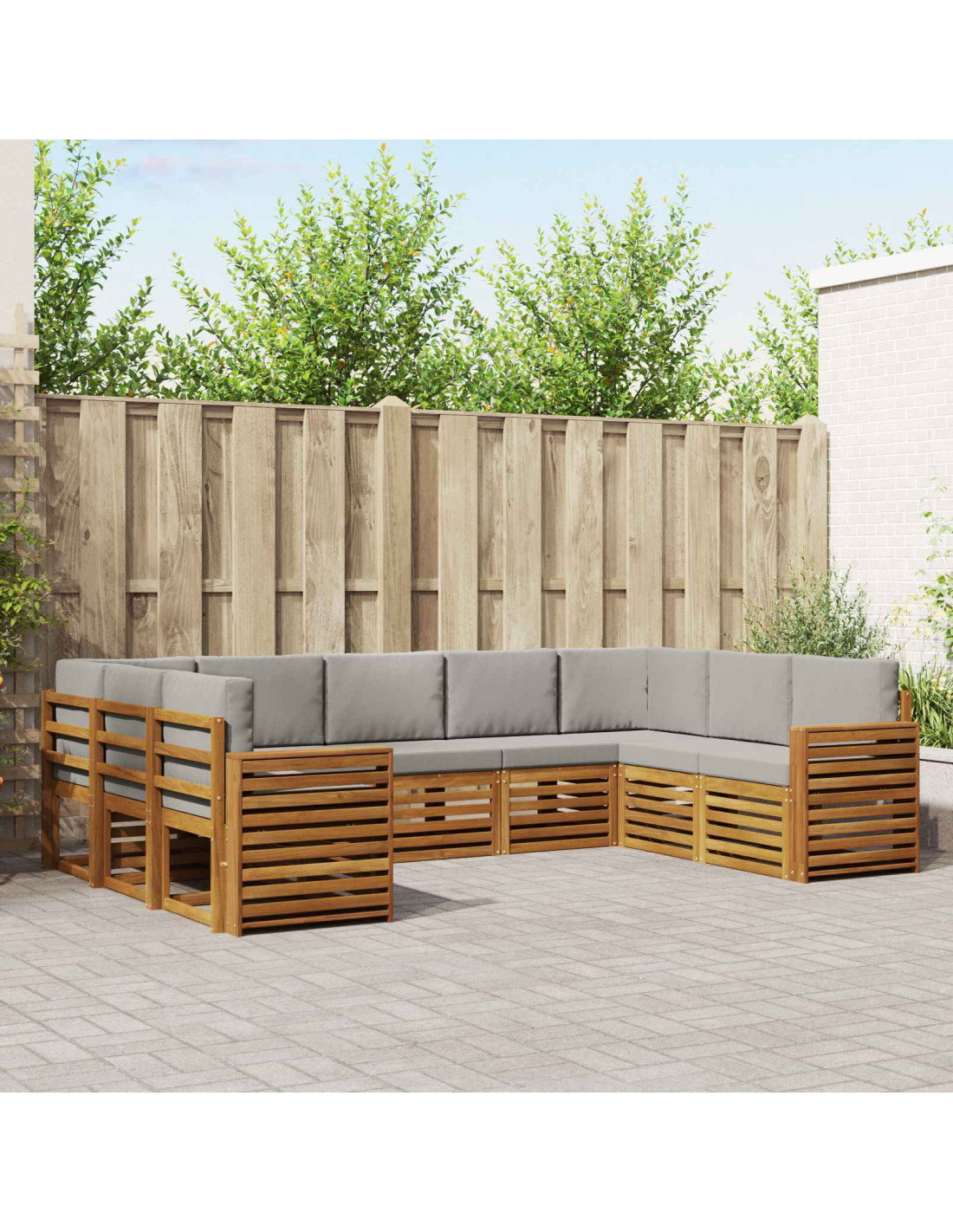 Questo set di mobili da esterno unisce stile e funzionalità, diventando il fulcro di qualsiasi giardino o terrazza. Il design moderno, con le sue linee pulite e dettagli semplici, aggiunge un tocco di eleganza, perfetto per il relax all'aperto e per passare del tempo in buona compagnia. Interamente fatto di legno massello di Acacia, è super resistente e mantiene a lungo un bell'aspetto, rendendolo una scelta perfetta per chi cerca praticità e un bel design nei mobili per esterni.
