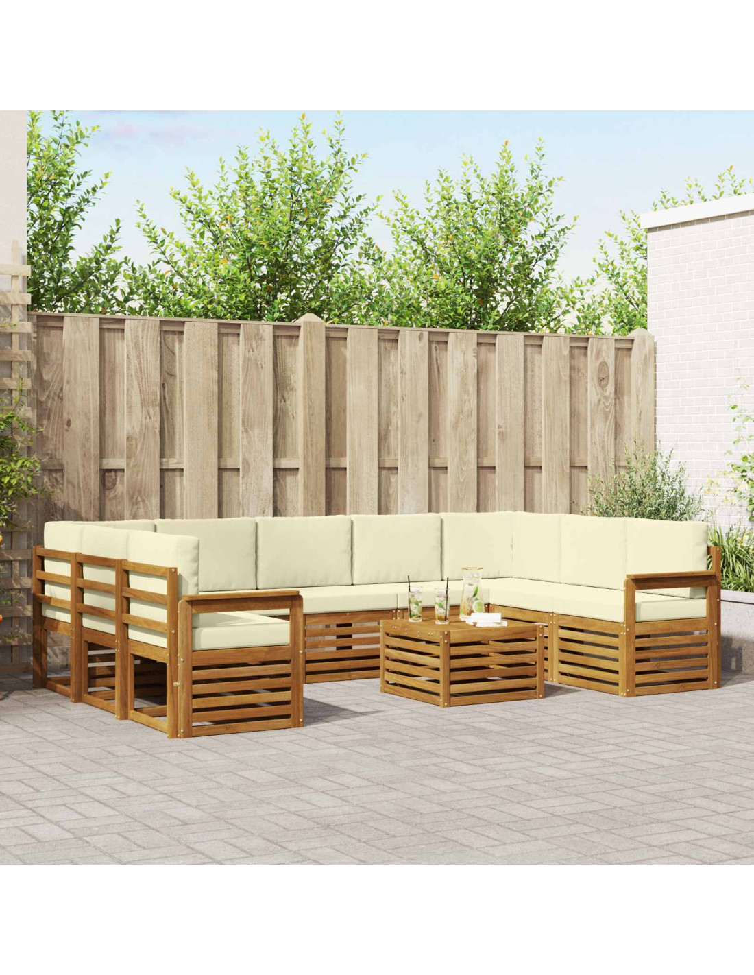 Il set di mobili da esterno unisce stile e praticità, diventando il punto focale di qualsiasi giardino o terrazza. Con il suo design moderno, dalle linee pulite e dettagli minimal, porta eleganza e favorisce momenti di relax e socialità all'aperto. Interamente in legno massello di acacia, è durevole e ha un richiamo visivo che dura nel tempo, rendendolo la scelta perfetta per chi cerca mobili da esterno belli e funzionali.