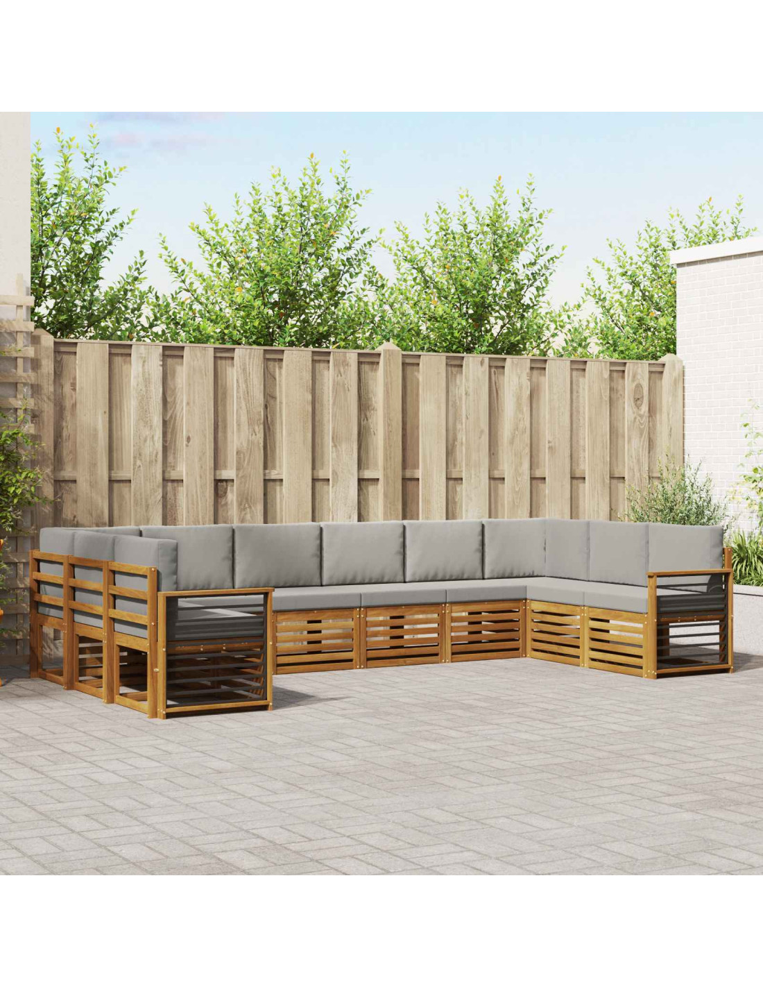 Questo set di mobili per esterni unisce stile e funzionalità, creando un punto di riferimento unico per ogni giardino o terrazzo. Il design moderno, con linee pulite e dettagli semplici, aggiunge un tocco elegante e favorisce il relax e l’incontro all’aperto. Interamente fatto di legno massello di acacia, il set è durevole e di bell'aspetto, perfetto per chi cerca sia praticità che un tocco sofisticato nei propri mobili da esterno.