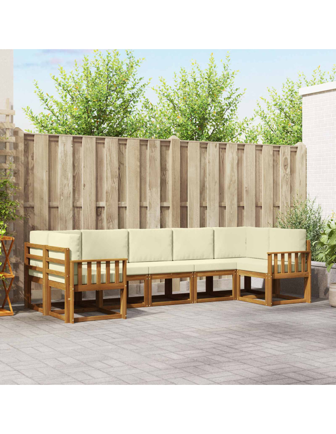 Questo set di divani modulari da esterno porta un'atmosfera moderna e semplice, perfettamente integrata in ogni giardino, patio o zona piscina. Il design modulare consente di creare varie configurazioni, rendendolo ideale per reunion familiari intime o eventi più grandi. Realizzato in legno massello di acacia, il set emana un fascino naturale, e il suo colore marrone si intona alla vegetazione circostante, creando un ambiente accogliente per il relax e la convivialità.