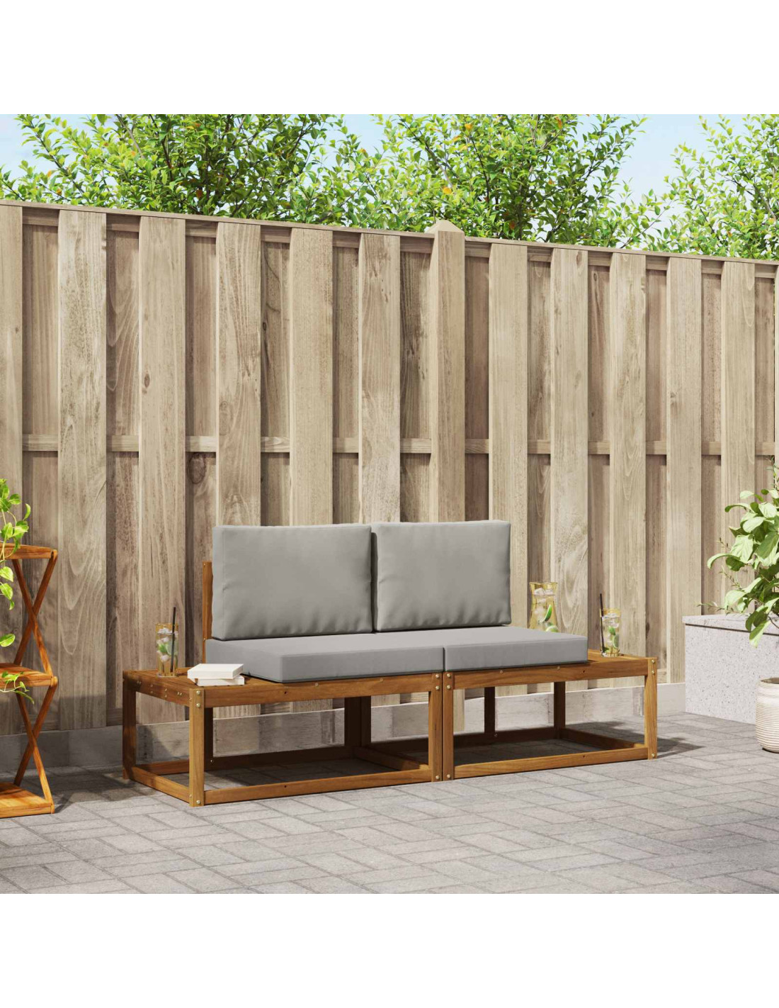 - Costruzione in legno ingegnerizzato: Questo set di divani è fatto di legno ingegnerizzato, noto per la sua lunga durata e sostenibilità. Ha l'aspetto di un legno naturale elegante, rendendo ogni spazio esterno accogliente. Resiste all'usura quotidiana e agli agenti esterni, garantendo un'esperienza all'aperto duratura.
