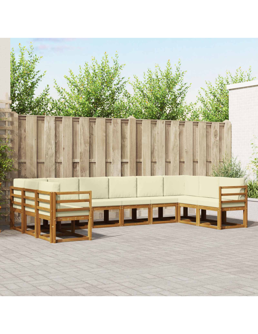 Questo set di divani modulari per esterni porta un tocco di modernità al tuo patio o giardino, con un design elegante e funzionale. Realizzato in legno massello di acacia, la sua costruzione stilosa vanta dettagli come schienali a doghe e tonalità marroni calde, che si abbinano perfettamente a qualsiasi ambiente esterno. È pensato per il comfort e la versatilità, offrendoti un’area accogliente dove rilassarti o intrattenere ospiti. Goditi la vita all'aperto, ammira la piscina o crea un rifugio nel tuo giardino con questo set di divani versatile.