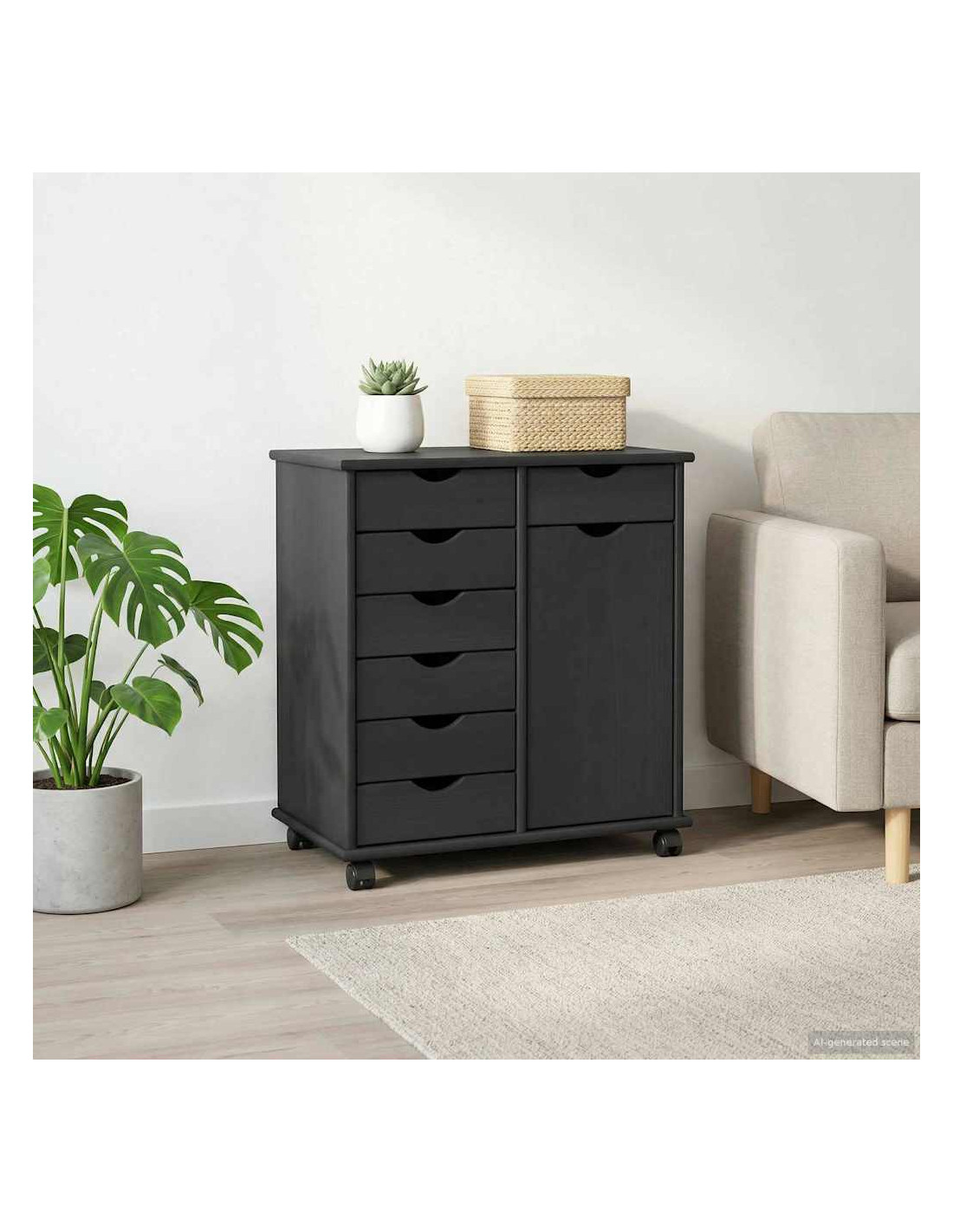 - Design mobile: Grazie alle ruote, questo cabinet è facile da spostare a seconda delle esigenze. Perfetto in ambienti dinamici, sia per riorganizzare durante una creativa sessione di lavoro che per liberare spazio per gli ospiti.