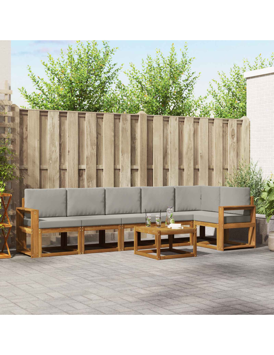 Questo set di divani modulari per esterni unisce design moderno e praticità, rendendolo un'ottima scelta per giardini o patii. Realizzato con cura in legno di acacia massello, il set ha un fascino elegante e rustico. La semplicità del design offre un'estetica versatile che si sposa bene con vari stili d'arredo esterni, arricchendo l'atmosfera, sia accanto alla piscina sia in un angolo tranquillo del giardino. Questo allestimento modulare si adatta a diverse configurazioni, rispondendo facilmente a varie esigenze di seduta e occasioni sociali. Gli schienali a doghe e le caratteristiche aggiuntive sono pensati per godere dei momenti all'aperto con comfort e stile.