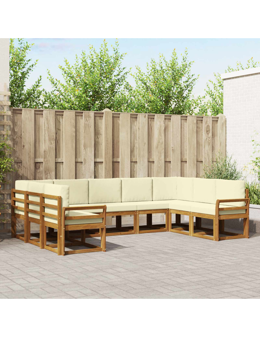 Questo set di divani sezionali da esterno è un'ottima scelta per ogni giardino, patio o bordo piscina. Con un design moderno e semplice, combina funzionalità ed eleganza. È perfetto per chi vuole creare uno spazio di relax. Il caldo tono marrone e la robusta costruzione in legno di acacia creano un'atmosfera accogliente che si integra benissimo con la natura. Immagina di goderti le serate al tramonto con questo fantastico set che arricchisce la tua esperienza all'aperto.