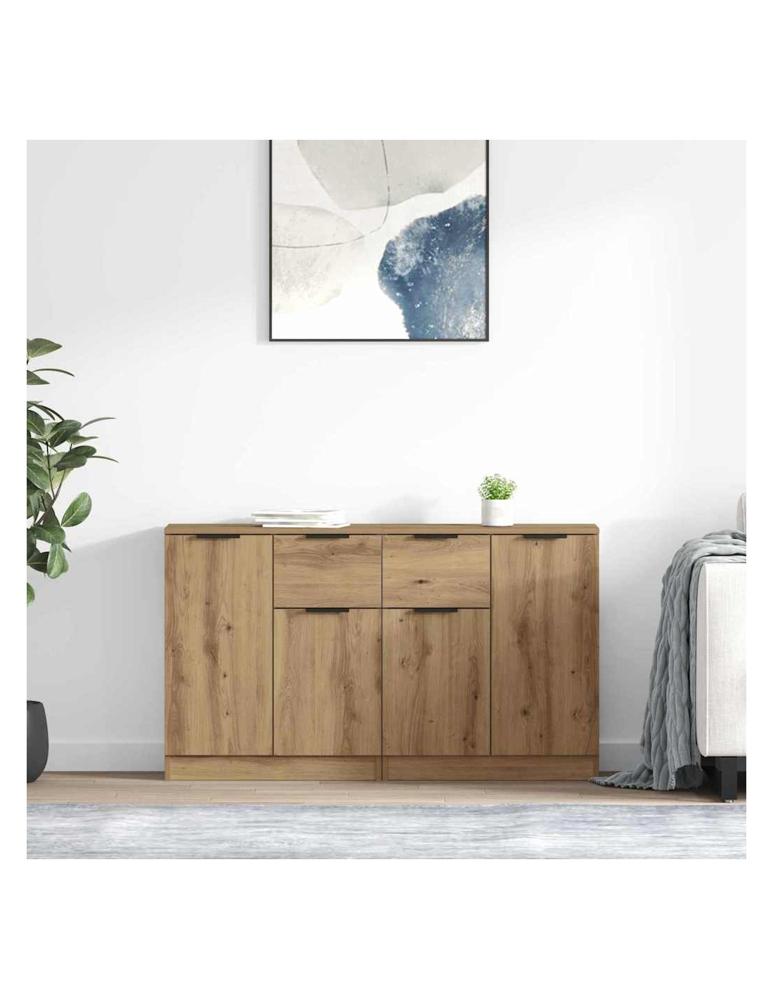 - Design moderno ed elegante: La credenza ha uno stile moderno e semplice, perfetta per sala da pranzo o cucina. Con linee pulite e un design minimalista, sta bene in qualsiasi decor, rendendola una scelta versatile.