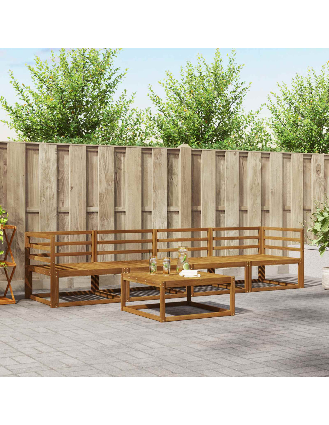 Questo set di divani modulari da esterno è il massimo per il living all'aperto moderno, unendo eleganza e funzionalità. Perfetto per un relax chic in giardini, patii o vicino alla piscina, crea un'atmosfera accogliente grazie alle sue linee pulite e minimalista. Il legno di acacia marrone naturale si integra bene in ogni contesto esterno, invitando a rilassarsi in totale comfort.