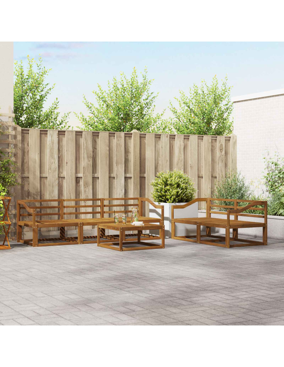 - Legno massello di acacia: Questo set di divani è realizzato in legno massello di acacia di alta qualità, che offre un fascino naturale e una grande resistenza. Conosciuto per la sua durata e le bellissime venature, il legno di acacia è resistente agli agenti atmosferici e all'usura quotidiana, garantendo bellezza e prestazioni nel tempo. La lucentezza naturale del legno è elegante e richiede poche cure, perfetto per chi ama uno stile curato.