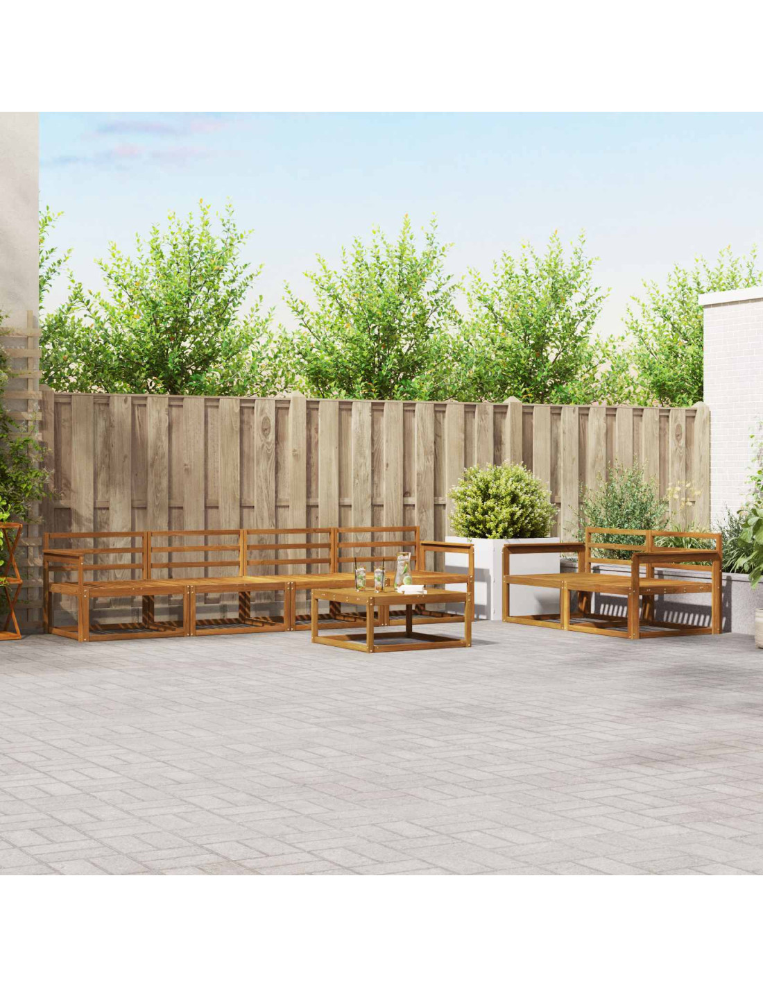 - Legno massello di Acacia: Costruito con legno massello di Acacia, questo set è noto per la sua resistenza e naturale capacità di resistere agli agenti atmosferici. Le calde nuances del legno ne esaltano il fascino, unendo lusso e durabilità in ogni spazio esterno.