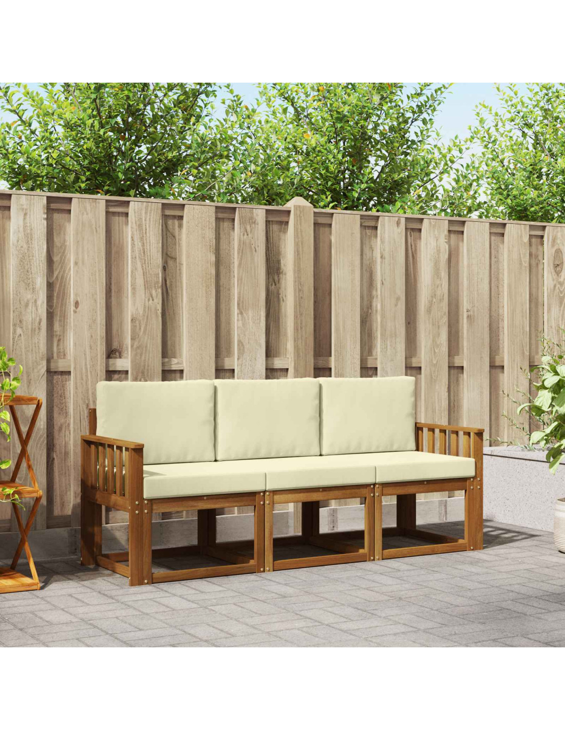 Il set di mobili da esterno unisce stile e funzionalità, rendendolo un must-have per giardini e terrazze. I suoi lineamenti moderni e la semplicità dei dettagli aggiungono un tocco di eleganza che incoraggia il relax e i momenti di socializzazione. Realizzato in legno massello di acacia, è resistente e bello da vedere, rendendolo la scelta ideale per chi cerca praticità e un design attraente.