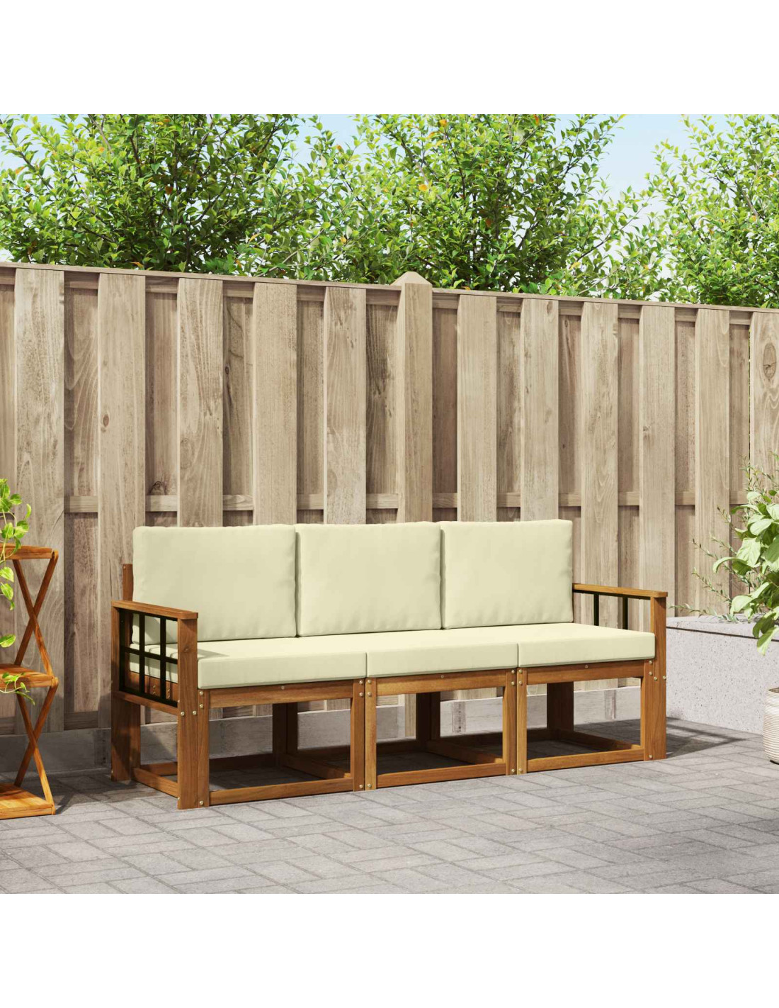 Il set di mobili da esterno unisce stile e funzionalità, rendendolo un must-have per giardini e terrazze. I suoi lineamenti moderni e la semplicità dei dettagli aggiungono un tocco di eleganza che incoraggia il relax e i momenti di socializzazione. Realizzato in legno massello di acacia, è resistente e bello da vedere, rendendolo la scelta ideale per chi cerca praticità e un design attraente.
