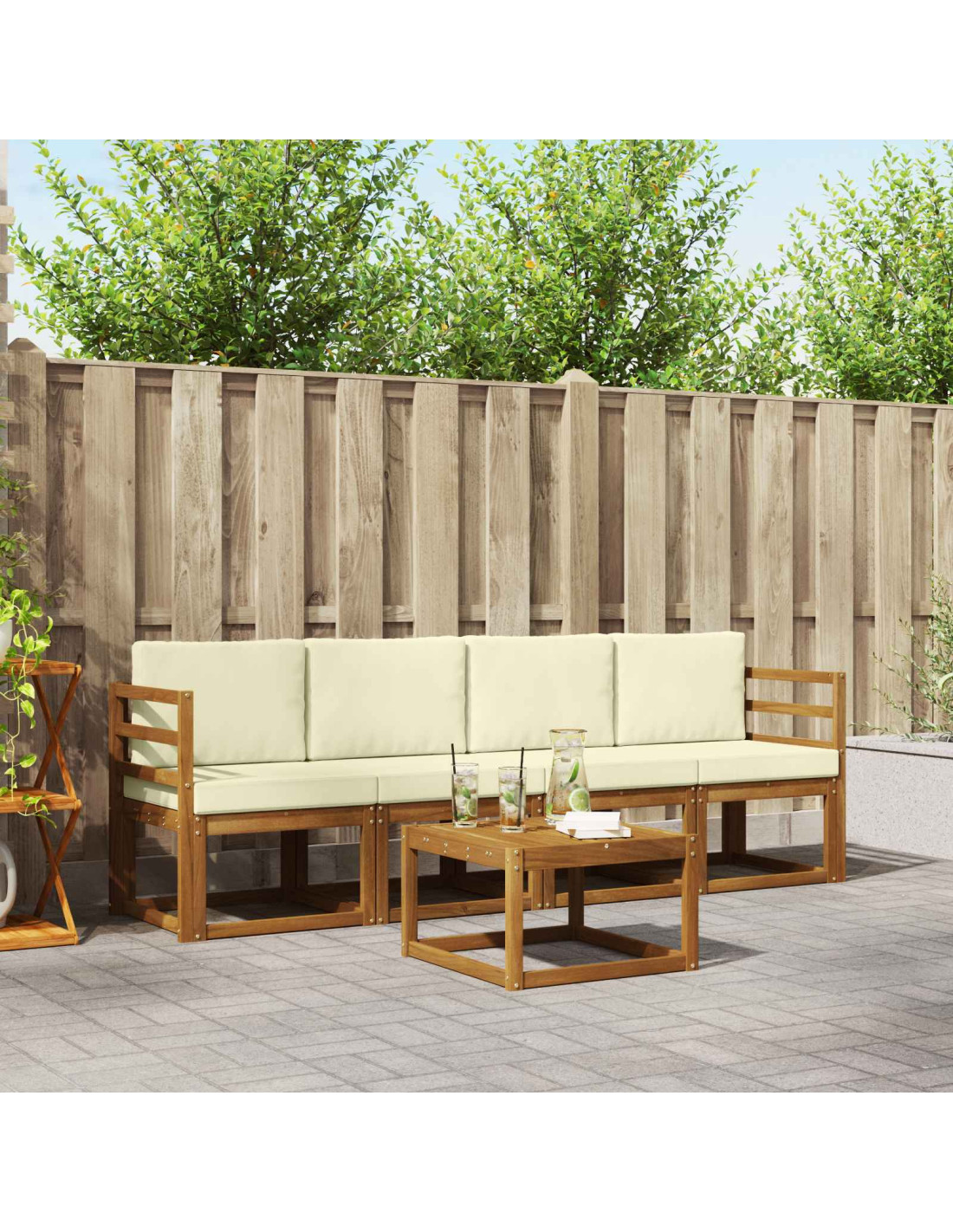 Il set di mobili per esterni è la fusione perfetta di stile e praticità, creando un centro d'attenzione per qualsiasi giardino o terrazzo. Il design moderno e lineare aggiunge un tocco di eleganza, facilitando momenti di relax all'aperto e socialità. Completamente realizzato in legno massello di acacia, questo set è robusto e presenta un aspetto che dura nel tempo, rendendolo ideale per chi cerca praticità e un design raffinato.