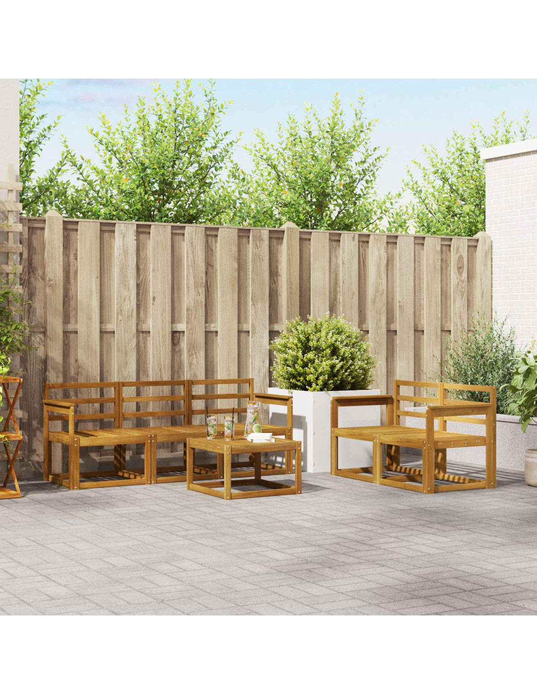 Questo set di mobili per esterni fonde stile e funzionalità, creando un colpo d'occhio bello per ogni giardino o terrazza. Con un design moderno, fatto di linee pulite e pochi dettagli, aggiunge eleganza e favorisce momenti di relax e socialità all'aperto. Interamente in legno massello di acacia, questo set è duro e dal fascino duraturo, l'ideale per chi cerca praticità e un tocco di classe nei mobili da esterno.