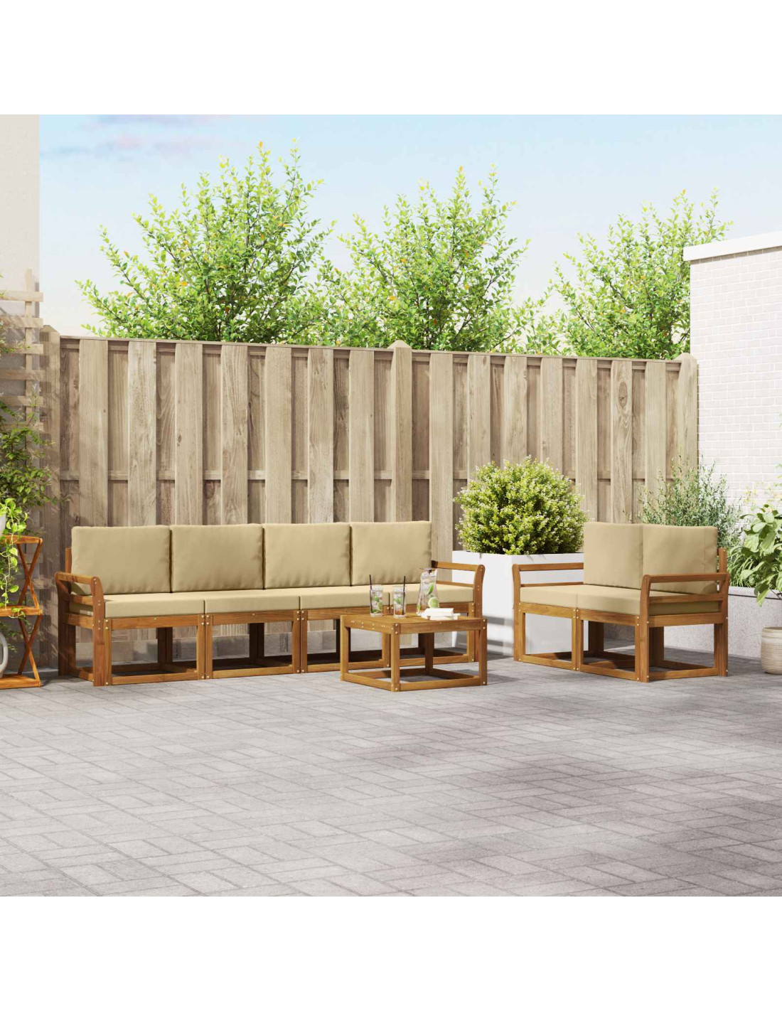 - Componenti Inclusi: Il set include braccioli e schienali ergonomici per un comfort extra. La struttura in legno massello garantisce robustezza, mentre il design salvaspazio permette di decorare o fare lounging senza problemi.
