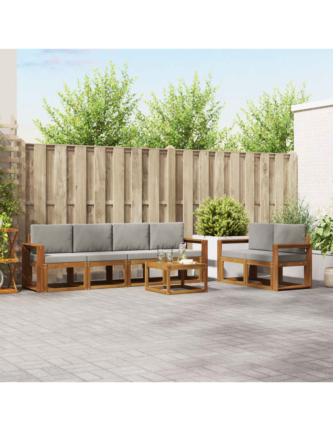 - Design Slattato Elegante: Con uno stile slattato, questo set porta un tocco minimalista, unendo estetica e buona circolazione d'aria. Le sue linee pulite si mixano bene con gli ambienti moderni, mantenendo le sedute fresche anche nelle giornate più calde.