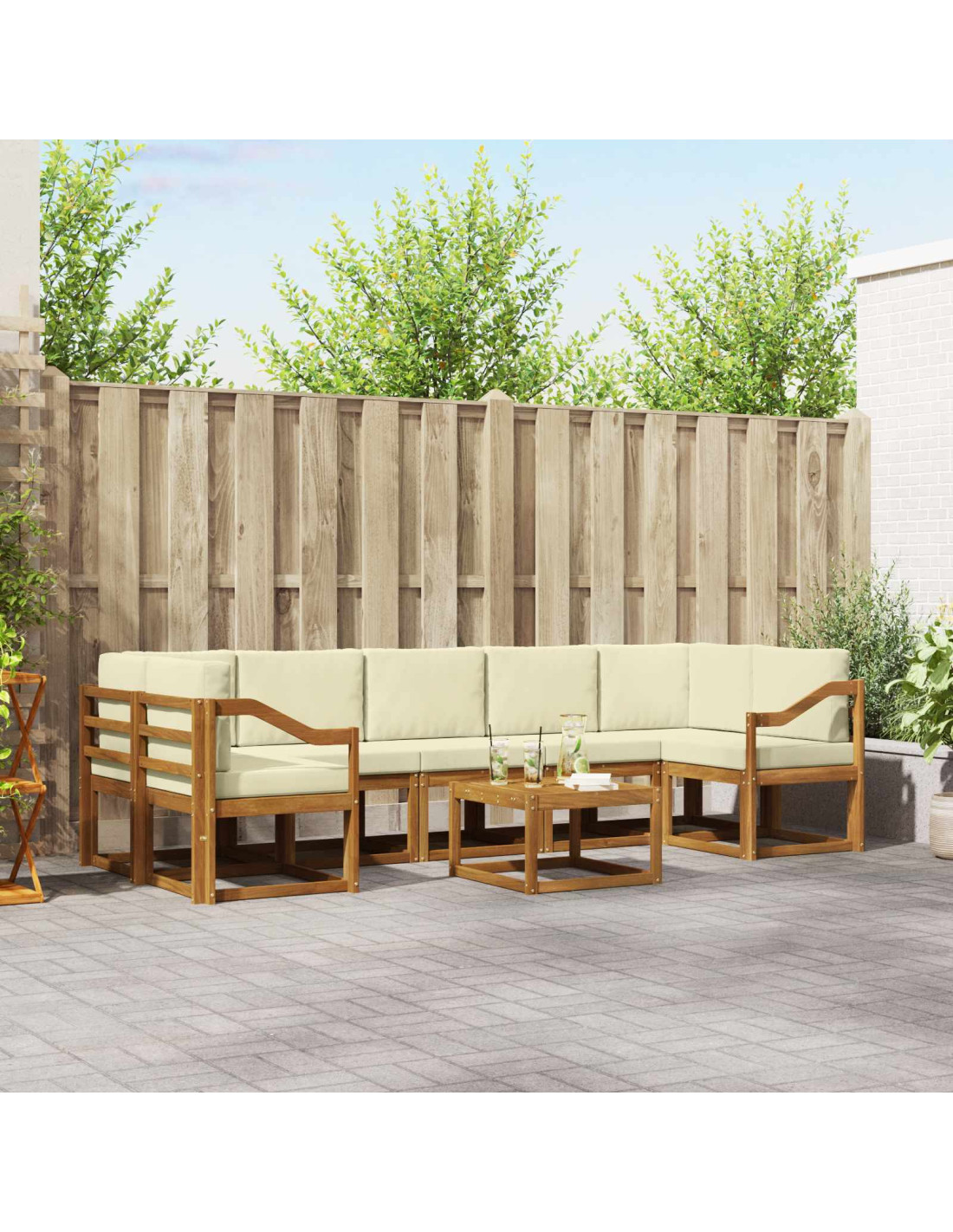 Questo set di divani modulari da esterno è perfetto se cerchi stile e funzionalità. Con linee pulite e un design minimalista, questo set è ideale per giardini, patii e aree piscina. Realizzato in legno massello di acacia, è resistente e pensato per affrontare il clima. Puoi cambiarne la disposizione per adattarlo al tuo spazio, rendendolo una scelta top per chi ama mobili da esterno belli e versatili.
