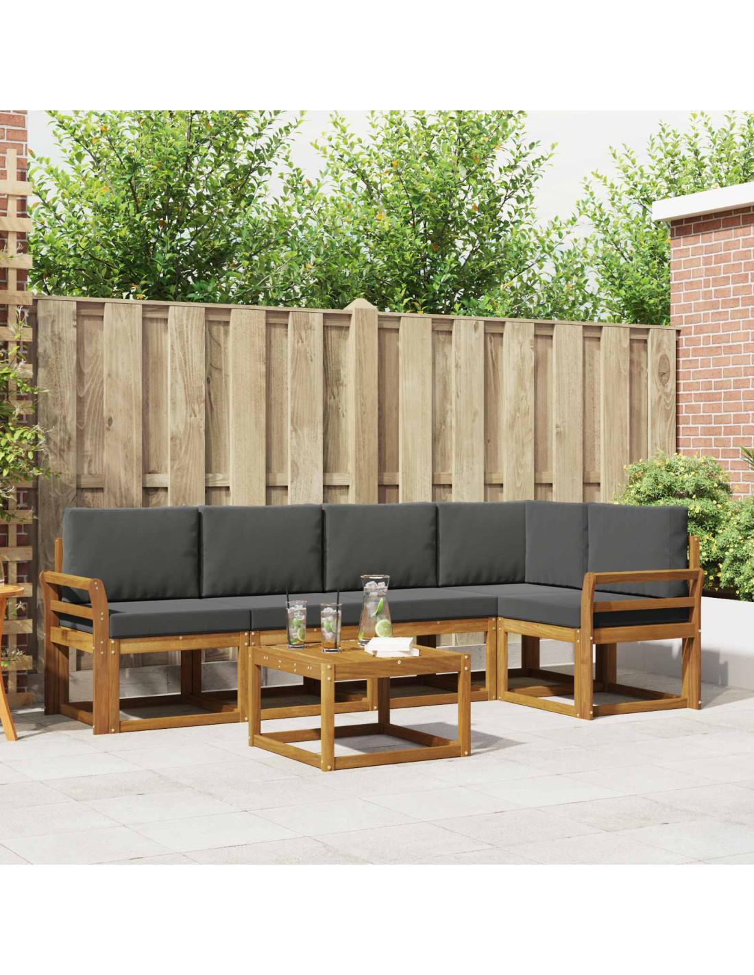 Il set di mobili da esterno unisce stile e praticità, diventando il pezzo forte di qualsiasi giardino o terrazza. Con il suo design moderno, caratterizzato da linee pulite e semplici dettagli, aggiunge eleganza e favorisce il relax e la socializzazione all'aperto. Fatto interamente in legno massello di acacia, il set è resistente e ha un'attrattiva duratura, perfetto per chi cerca sia funzionalità che bellezza nei mobili da esterno.