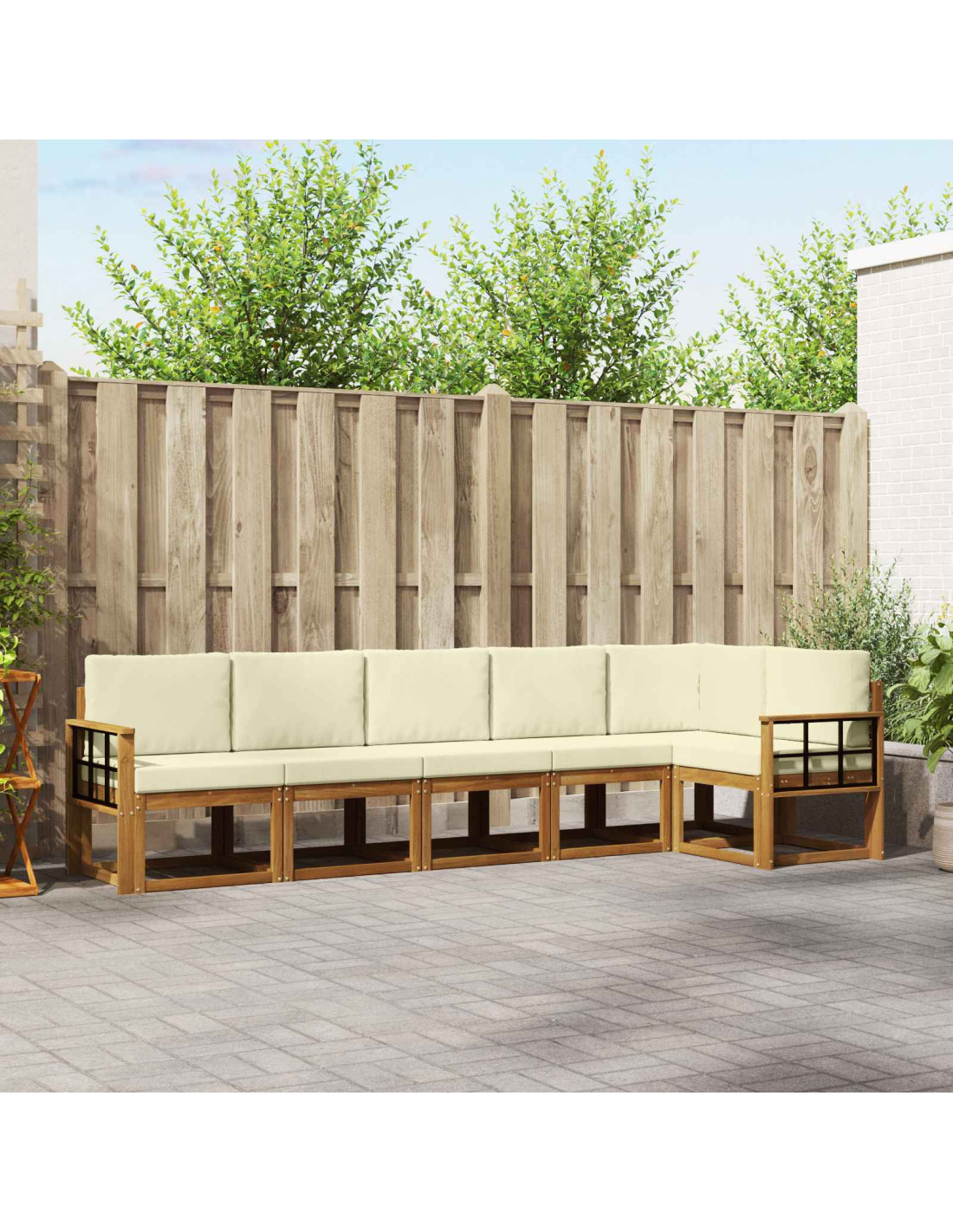 Questo set di mobili da esterno combina stile e funzionalità, diventando il punto focale di qualsiasi giardino o terrazza. Il design moderno, con linee pulite e dettagli minimali, aggiunge eleganza e favorisce il relax all'aperto e le riunioni sociali. Realizzato interamente in legno massello di acacia, garantisce durata e bellezza nel tempo, perfetto per chi cerca praticità e design sofisticato nei mobili da esterno.
