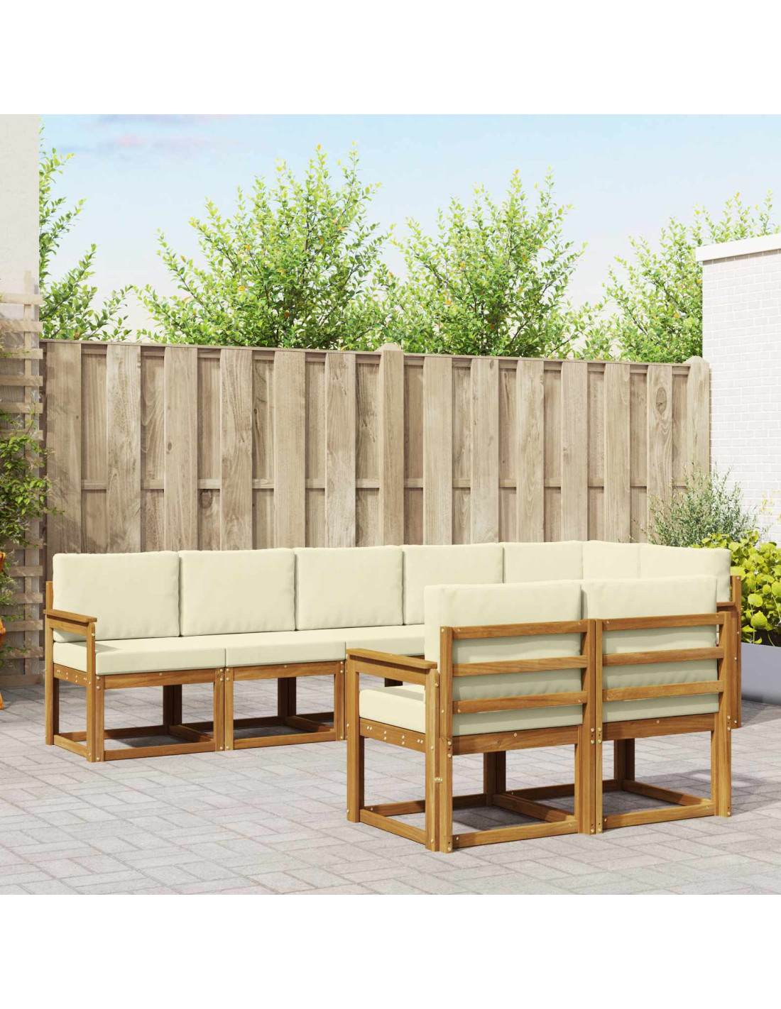 Questo set di mobili da esterno mescola stile e funzionalità, diventando il fulcro perfetto per ogni giardino o terrazza. Il design moderno con linee pulite e dettagli minimalisti aggiunge un tocco di eleganza, ideale per rilassarsi all'aperto o per incontri con gli amici. Realizzato interamente in legno massello di acacia, offre resistenza e un design che dura nel tempo, perfetto per chi cerca un connubio tra praticità e stile negli arredi esterni.
