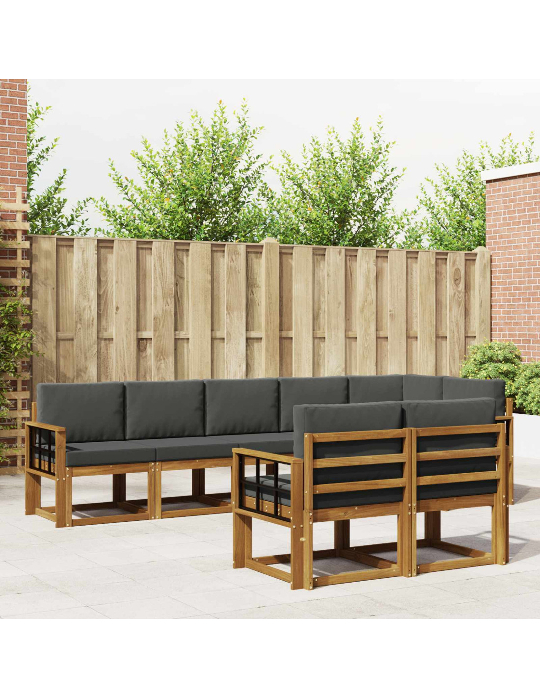 Questo set di mobili da esterno mescola stile e funzionalità, diventando il fulcro perfetto per ogni giardino o terrazza. Il design moderno con linee pulite e dettagli minimalisti aggiunge un tocco di eleganza, ideale per rilassarsi all'aperto o per incontri con gli amici. Realizzato interamente in legno massello di acacia, offre resistenza e un design che dura nel tempo, perfetto per chi cerca un connubio tra praticità e stile negli arredi esterni.