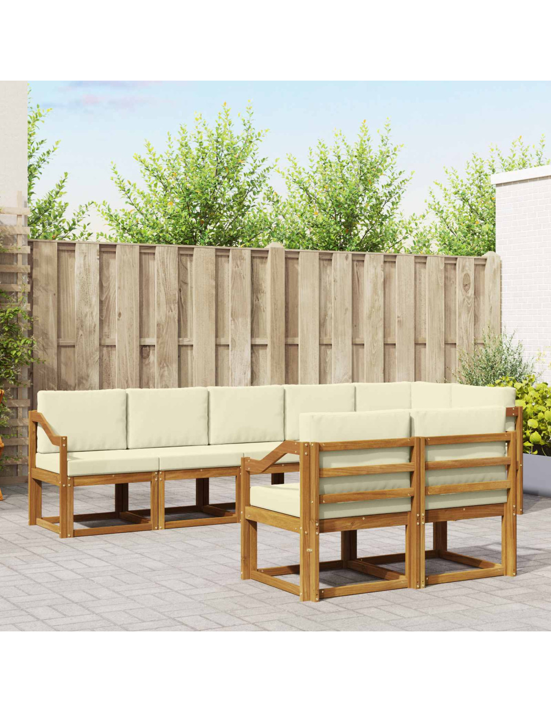 Questo set di mobili da esterno mescola stile e funzionalità, diventando il fulcro perfetto per ogni giardino o terrazza. Il design moderno con linee pulite e dettagli minimalisti aggiunge un tocco di eleganza, ideale per rilassarsi all'aperto o per incontri con gli amici. Realizzato interamente in legno massello di acacia, offre resistenza e un design che dura nel tempo, perfetto per chi cerca un connubio tra praticità e stile negli arredi esterni.
