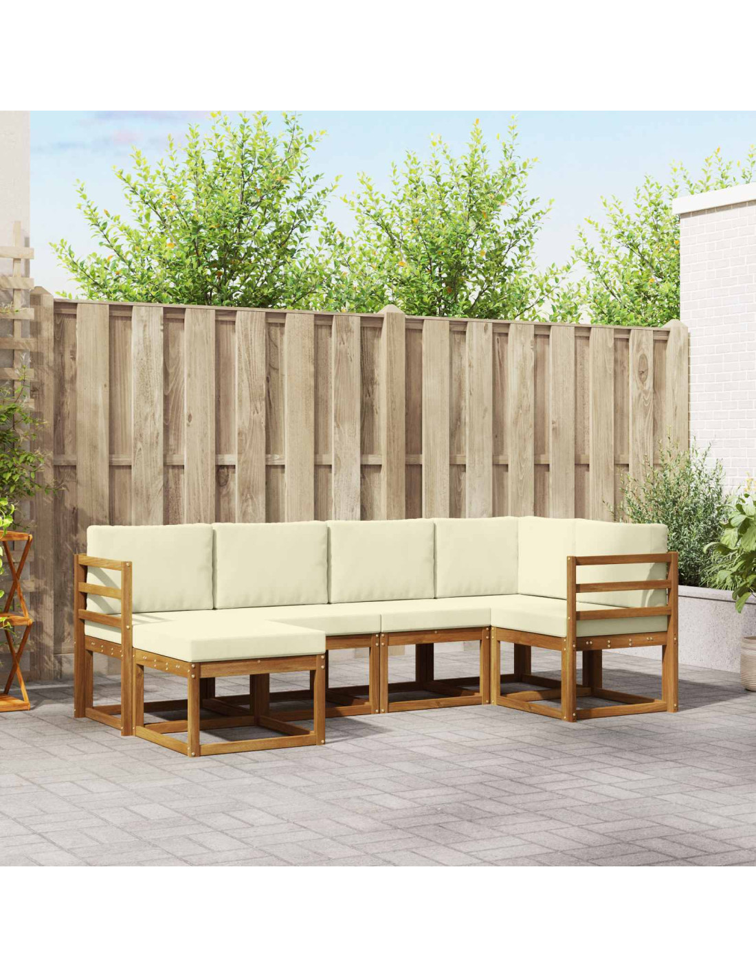 Unendo stile e praticità, questo set di mobili da esterno è il pezzo forte di ogni giardino o terrazza. Il design moderno, con linee pulite e dettagli minimalisti, porta eleganza e permette di godersi momenti di relax all'aperto e socialità. Costruito in legno massello di acacia, è durevole e visivamente accattivante, la scelta perfetta per chi cerca sia funzionalità che bellezza nel mobilio da esterno.