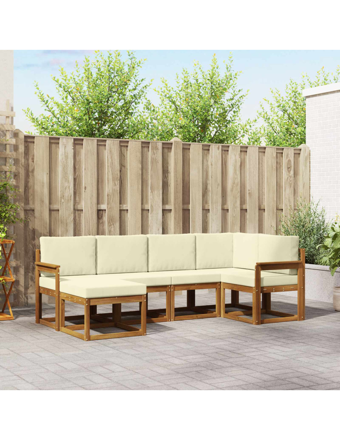 Unendo stile e praticità, questo set di mobili da esterno è il pezzo forte di ogni giardino o terrazza. Il design moderno, con linee pulite e dettagli minimalisti, porta eleganza e permette di godersi momenti di relax all'aperto e socialità. Costruito in legno massello di acacia, è durevole e visivamente accattivante, la scelta perfetta per chi cerca sia funzionalità che bellezza nel mobilio da esterno.