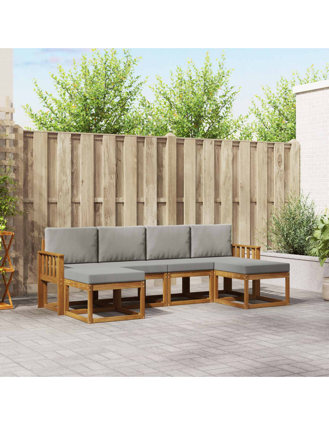 - Artigianato in legno ingegnerizzato: Realizzato in legno ingegnerizzato robusto, questo divano ha una finitura naturale che dona calore a qualsiasi ambiente. È progettato per resistere agli agenti atmosferici, garantendo lunga durata.