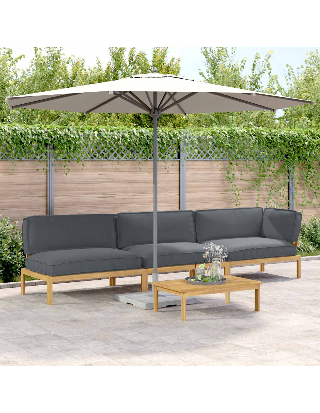 - Costruzione in legno massello di acacia Il set di sofà utilizza legno massello di acacia, noto per la sua grande durabilità e il suo calore. Trattato con una finitura oliata, resiste all'umidità e valorizza il colore naturale, ottimo per l'uso all'aperto.