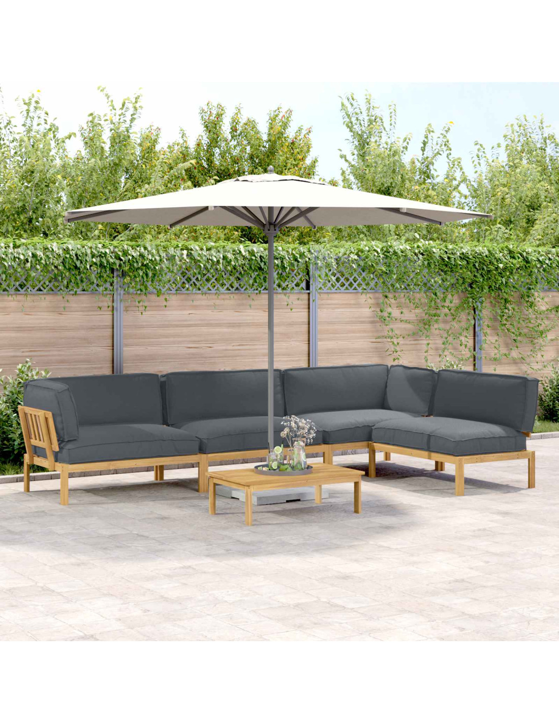 - Costruzione in legno massello di acacia Il set di sofà utilizza legno massello di acacia, noto per la sua grande durabilità e il suo calore. Trattato con una finitura oliata, resiste all'umidità e valorizza il colore naturale, ottimo per l'uso all'aperto.