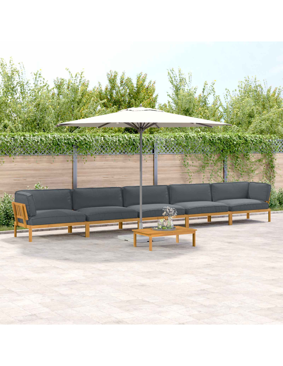 - Costruzione in legno massello di acacia Il set di sofà utilizza legno massello di acacia, noto per la sua grande durabilità e il suo calore. Trattato con una finitura oliata, resiste all'umidità e valorizza il colore naturale, ottimo per l'uso all'aperto.
