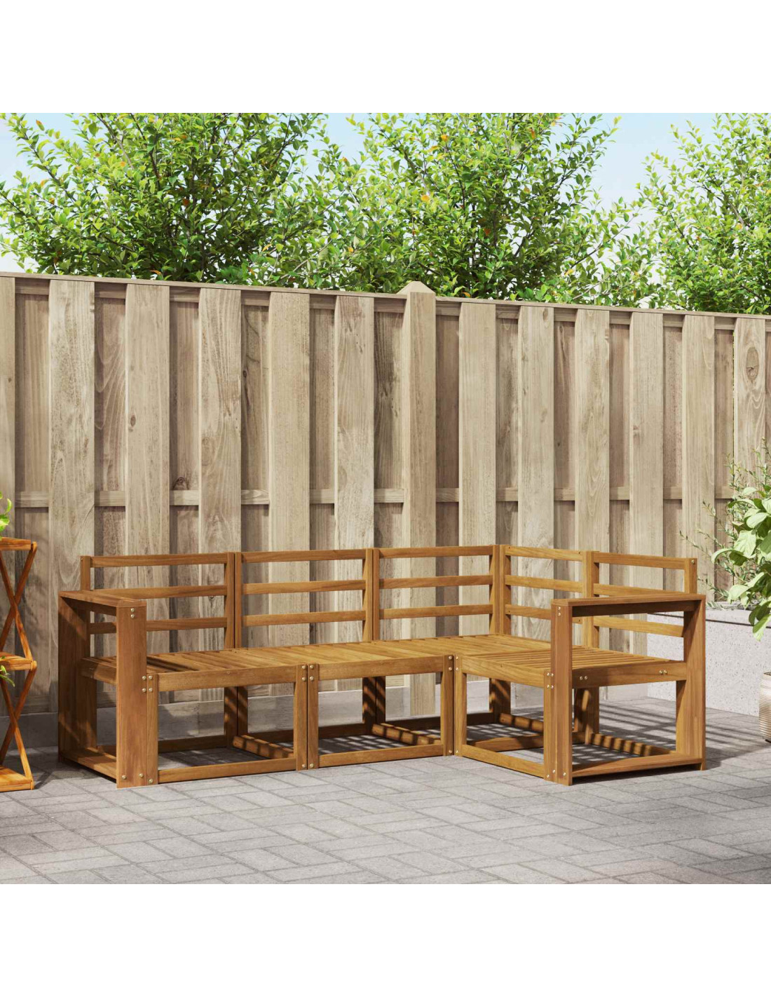 Questo set di mobili da esterno è la combinazione perfetta di stile e utilità, ideale per trasformare il tuo giardino o terrazzo in un bel posto dove stare insieme. Con un design moderno fatto di linee pulite e dettagli semplici, porta eleganza e supporta momenti di relax all'aperto. Realizzato in legno massello di acacia, garantisce durata e un look sempre fresco, rendendolo l'ideale per chi cerca praticità e un design raffinato per l'arredamento esterno.