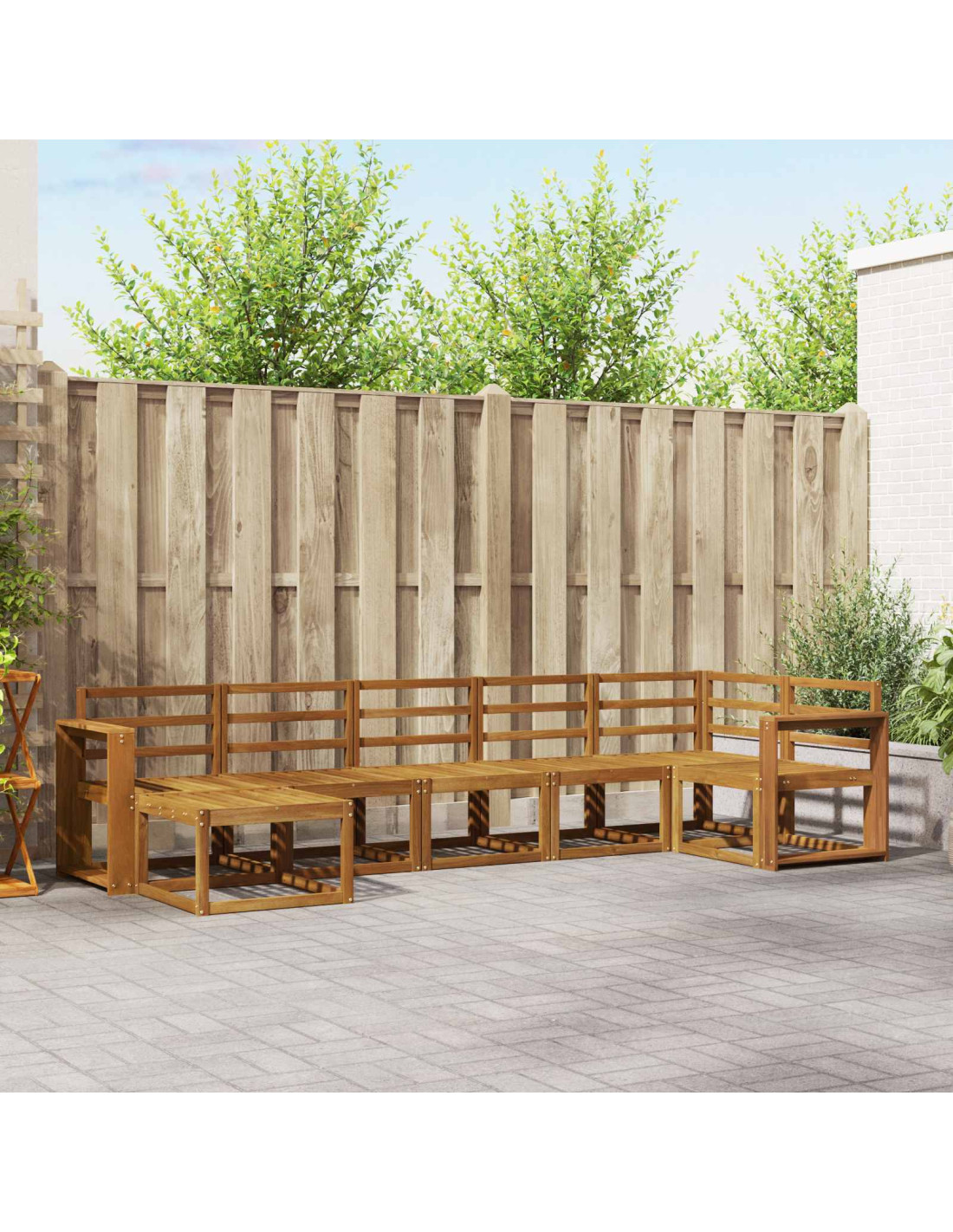 - Legno massello di acacia: Questo set è realizzato in legno massello di acacia di alta qualità, noto per la sua durata e resistenza agli agenti atmosferici. La venatura naturale aggiunge un tocco elegante al suo aspetto, rendendolo caldo e accogliente per gli spazi esterni.