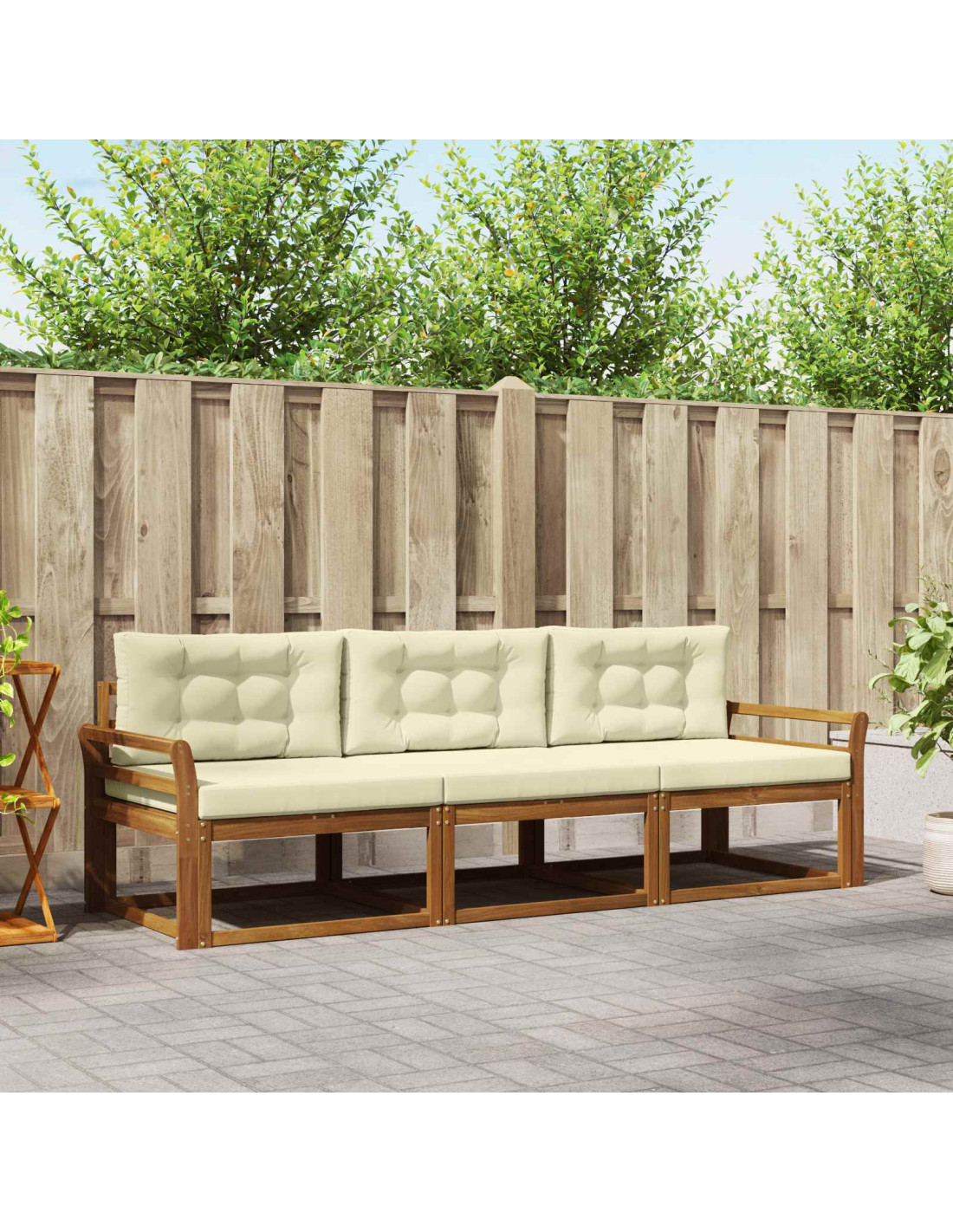 - Legno massello di acacia: Questo set di divani è realizzato in legno massello di acacia, un materiale conosciuto per la sua bellezza e resistenza agli agenti atmosferici. Il colore marrone scuro si integra perfettamente in qualsiasi giardino, unendo forma e funzionalità, e la sua naturale resistenza agli agenti atmosferici lo rende un elemento durevole.