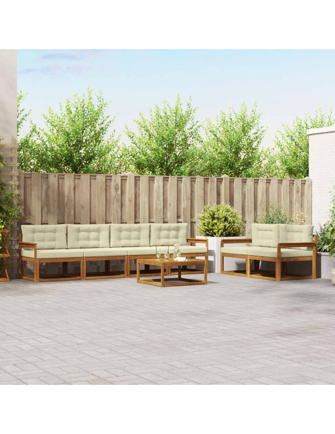 - Legno massello di Acacia: Costruito con legno massello di Acacia, questo set è noto per la sua resistenza e naturale capacità di resistere agli agenti atmosferici. Le calde nuances del legno ne esaltano il fascino, unendo lusso e durabilità in ogni spazio esterno.