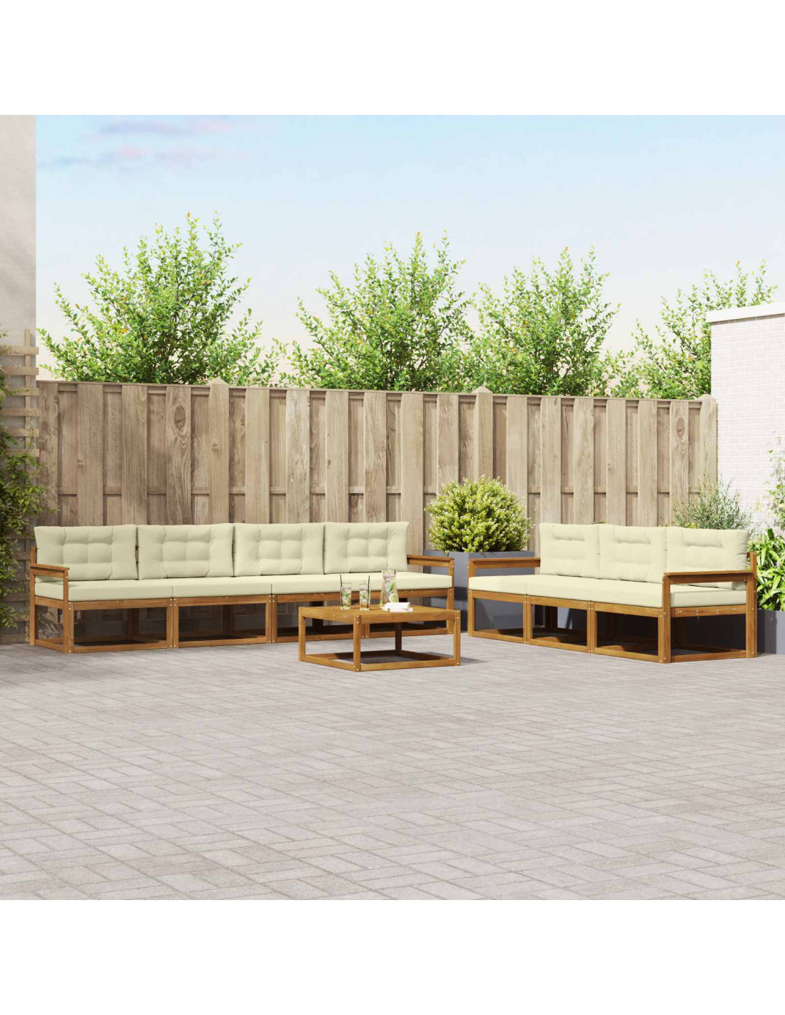 Questo set di divani sezionali da esterno dà un tocco di stile a qualsiasi giardino o patio. Realizzato con un telaio in legno di acacia, combina eleganza e funzionalità, creando l'atmosfera perfetta per rilassarsi o fare festa.